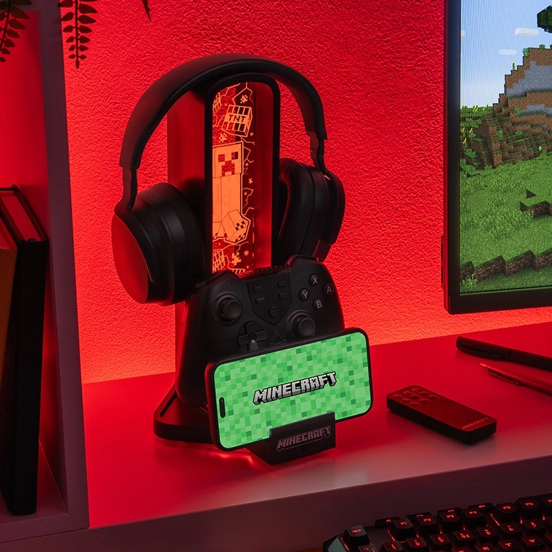 Dodajte svojmu hernému kútiku atmosféru vďaka držiaku na slúchadlá v štýle Minecraft. Výška 30 cm poskytne stabilné uloženie väčšiny slúchadiel, zatiaľ čo integrovaný stojanček na telefón udrží mobil vždy poruke. Viac režimov podsvietenia vytvorí jedinečné svetelné efekty na hranie aj prácu.