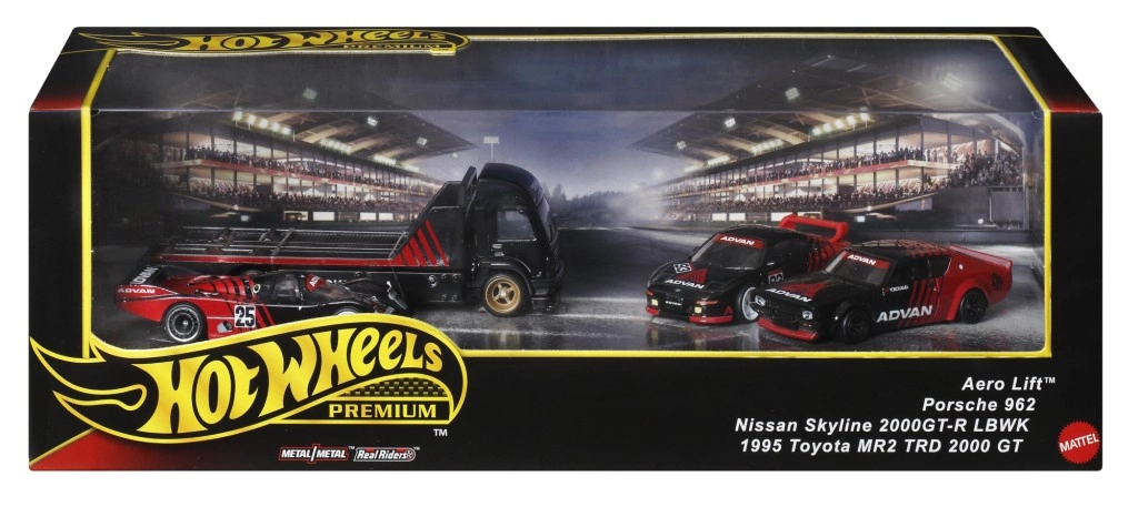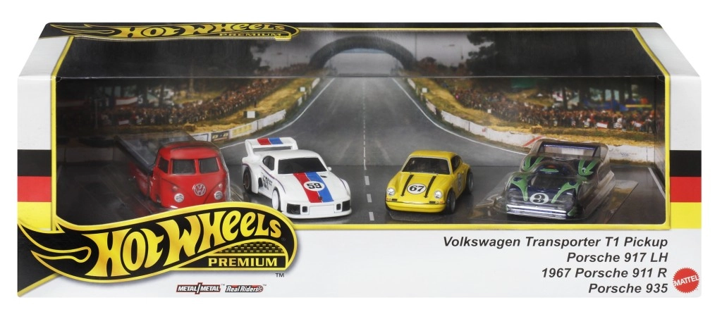 Každý model zodpovedá mierke 1:64, má kvalitný lak, realistické detaily a kolieska s hladkým chodom. Sada je dodaná v darčekovom balení s priehľadným okienkom, takže obsah skvele vynikne – perfektný tip na darček pre fanúšikov motosportu a značky HOT WHEELS.