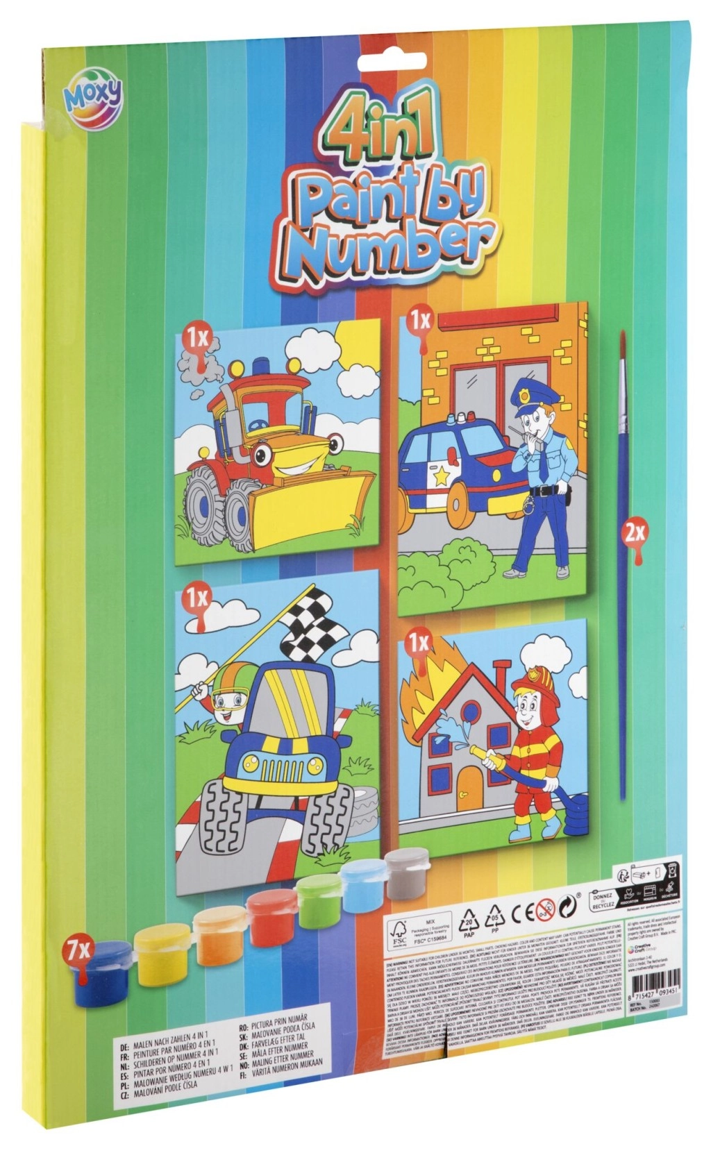 Objavte zábavný svet tvorenia s kreatívnou sadou maľovanie podľa čísel 4v1 pre chlapcov. Set obsahuje 4 predtlačené obrázky s motívmi pre chlapcov, akrylové farby, štetec a návod. Každé číslo zodpovedá farbe, takže maľovanie je jednoduché, zábavné a rozvíja trpezlivosť, sústredenie aj jemnú motoriku.