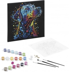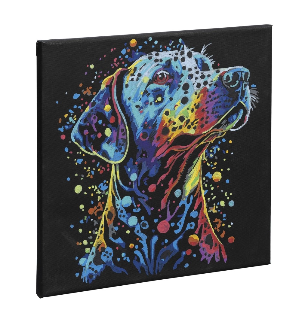 Objavte relaxačné tvorenie s kreatívnou sadou na maľovanie podľa čísel. Na čiernom plátne s motívom psa ľahko vykúzlite obraz krok za krokom vďaka očíslovaným políčkam a priloženým farbám. Jednoduché vyfarbovanie, presné výsledky a pôsobivý kontrast na čiernom podklade zaručia radosť z tvorenia aj krásnu dekoráciu interiéru.
