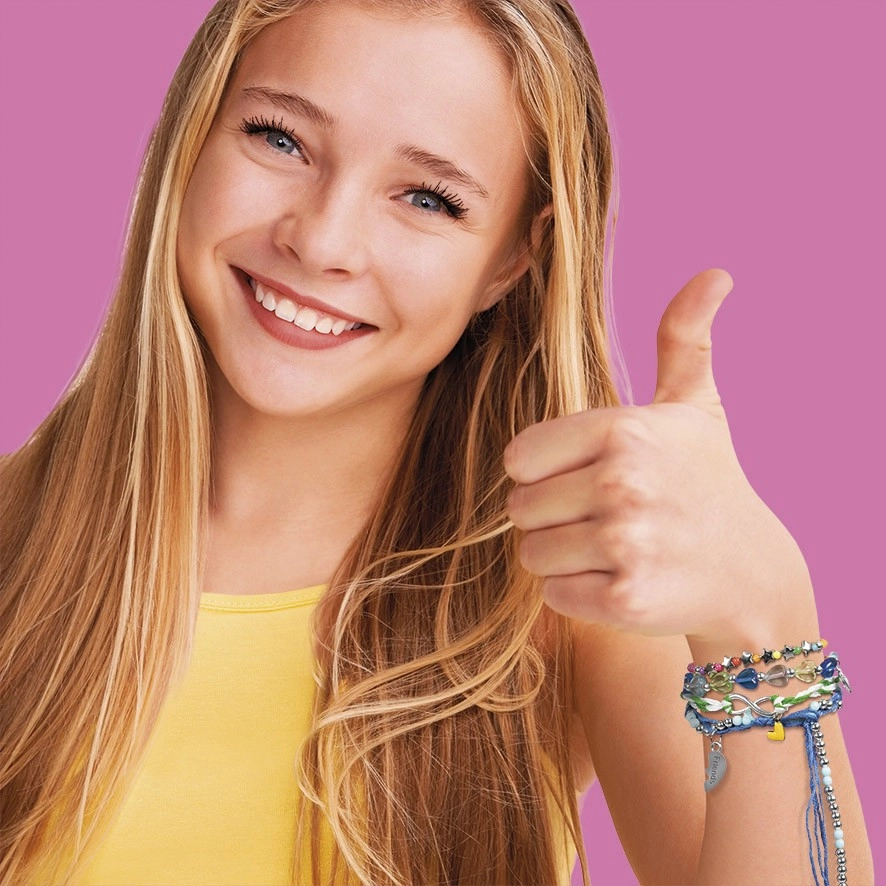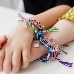Tvorte spolu a vymieňajte si náramky. Nastaviteľná šnúrka zaistí pohodlné nosenie pre deti rôzneho veku.