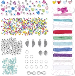 V balení nájdete lesklé, trblietavé aj farebné koráliky, odolné šnúry/lanká na pohodlné navliekanie a dekoratívne prívesky na finálne ozdobenie. Jednoduché uzlíkové a zapletacie techniky zvládnu aj začiatočníci. Vďaka nastaviteľným uzáverom náramky dobre sedia na rôzne veľkých zápästiach.