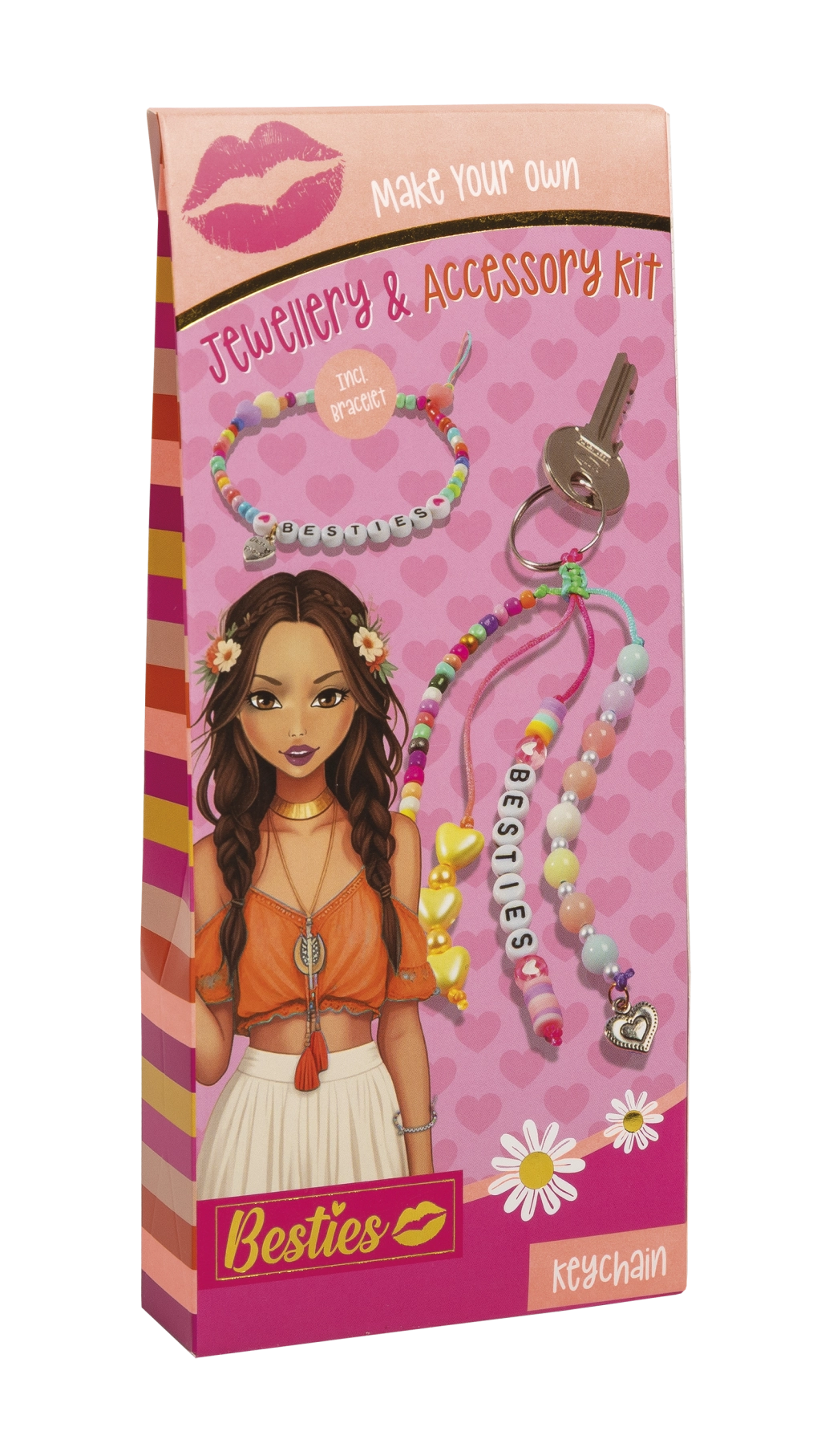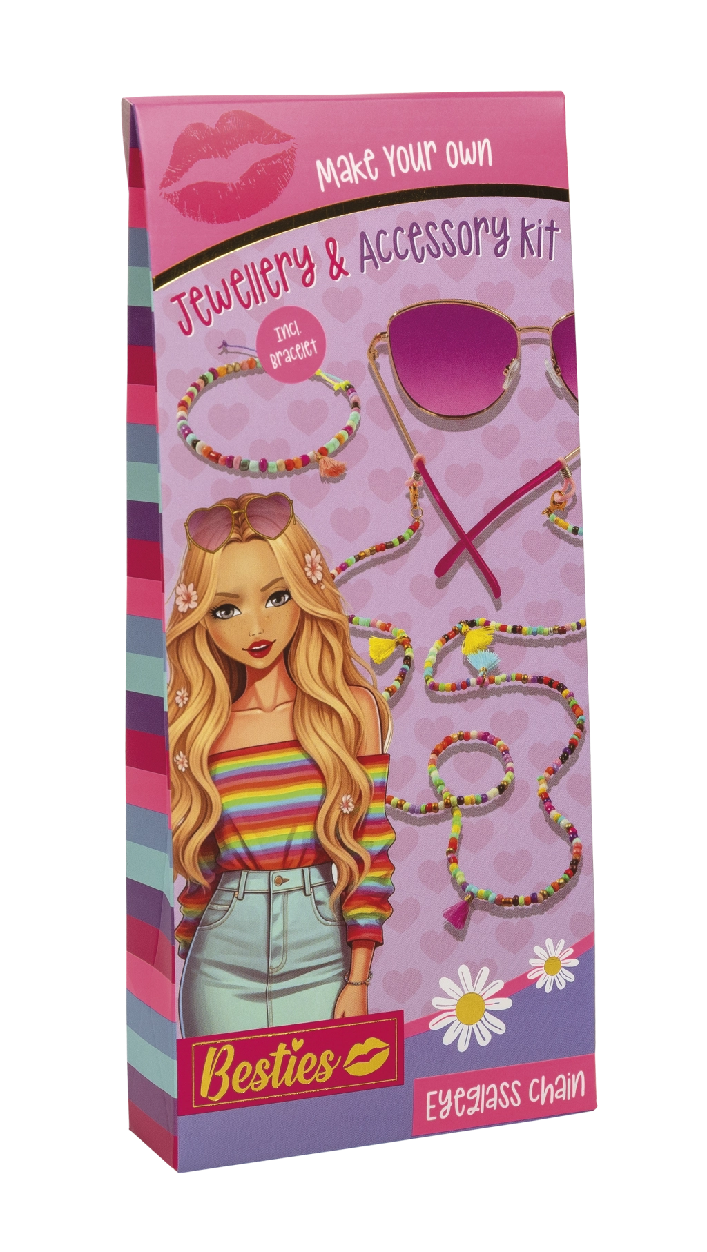 Objavte kreatívny svet s univerzálnou sadou Besties na výrobu šperkov a doplnkov. V balení nájdete všetko na tvorbu originálnych náramkov, kľúčeniek, príveskov na telefón aj šnúrok na okuliare. Perfektné na rozvoj jemnej motoriky, kreativity a osobitého štýlu detí aj začiatočníkov.