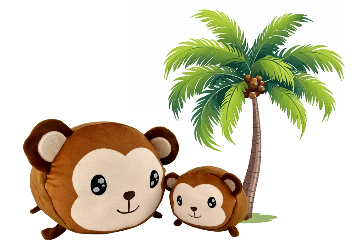 Tento set plyšových opičiek prináša maximálne pohodlie a nekonečné objatia. Menšia opička (20 cm) je ideálna ako prvý maznáčik pre najmenších, väčšia opička (40 cm) zase skvele poslúži ako mäkučký vankúšik na cesty, do auta alebo ako štýlová dekorácia do detskej izbičky.