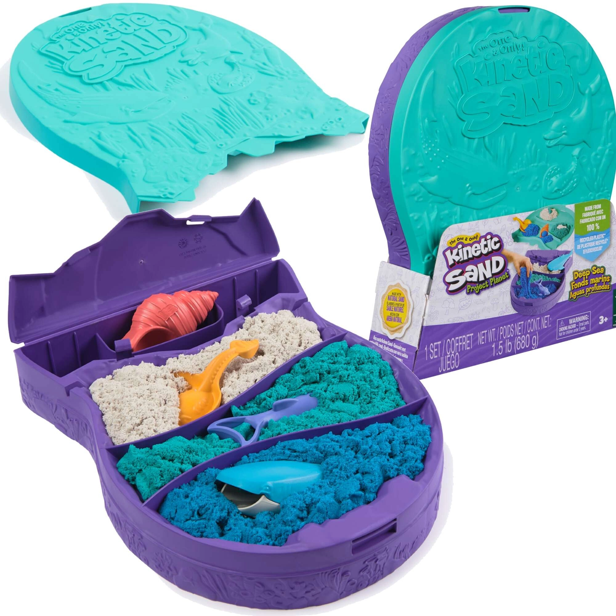 Objavte kúzlo kreatívnej hry s kinetickým pieskom Kinetic Sand Deep Sea. Tento prémiový set prináša 680 g piesku v troch farbách a praktické formičky na tvorbu vlastných morských svetov. Piesok je príjemne tvárny, nikdy nevysychá, nerobí neporiadok a je vyrobený z prírodného piesku, takže je bezpečný a ideálny na rozvoj detskej fantázie a jemnej motoriky.