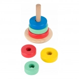 Deti trénujú úchop, skladanie a rovnováhu. Nasadzovanie krúžkov podporuje presnosť pohybov a koordináciu oko–ruka.