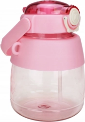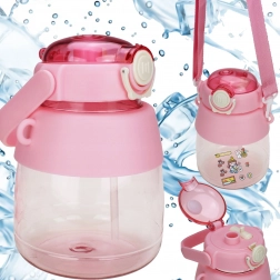 Detská fľaša na vodu so slamkou a popruhom 1 l – ružová