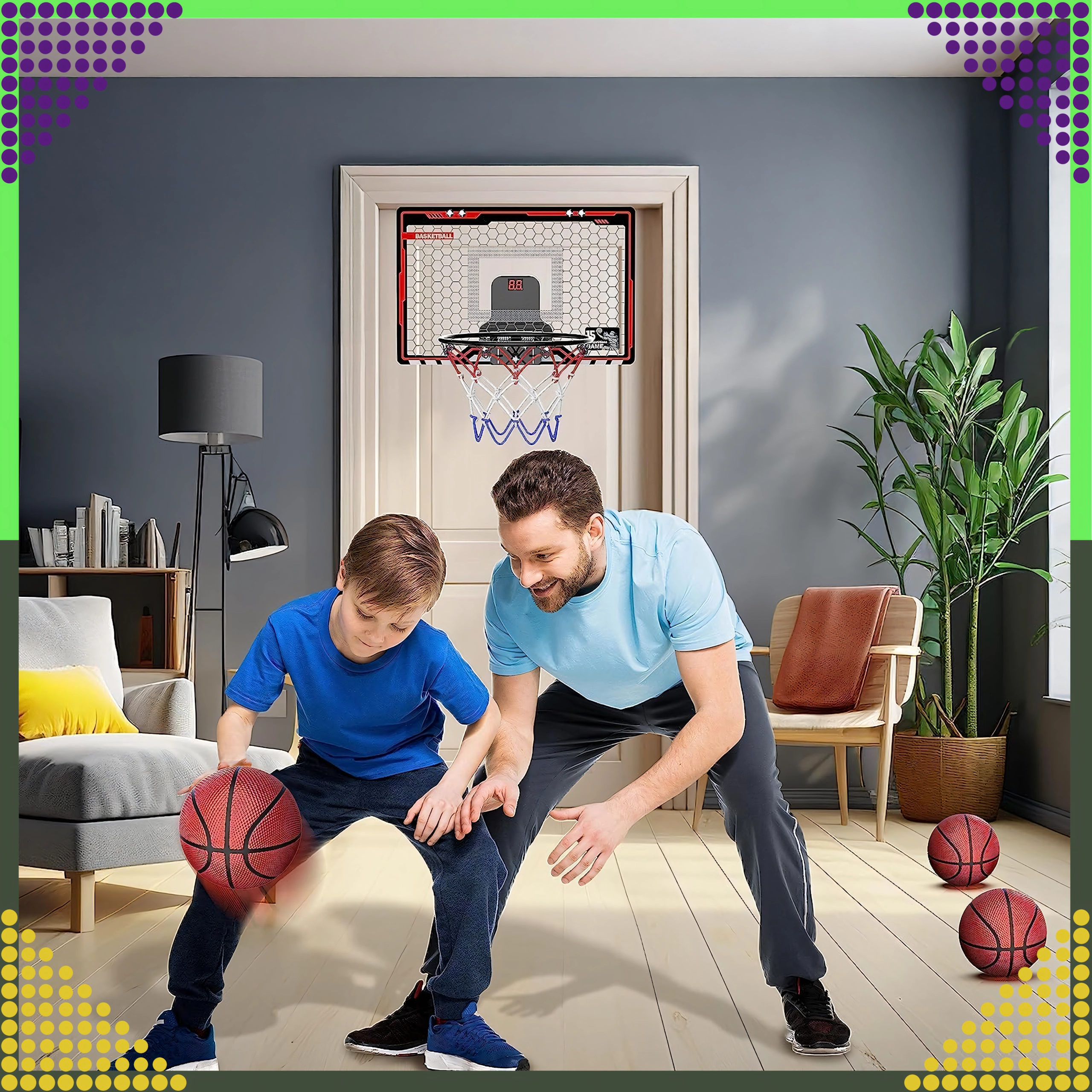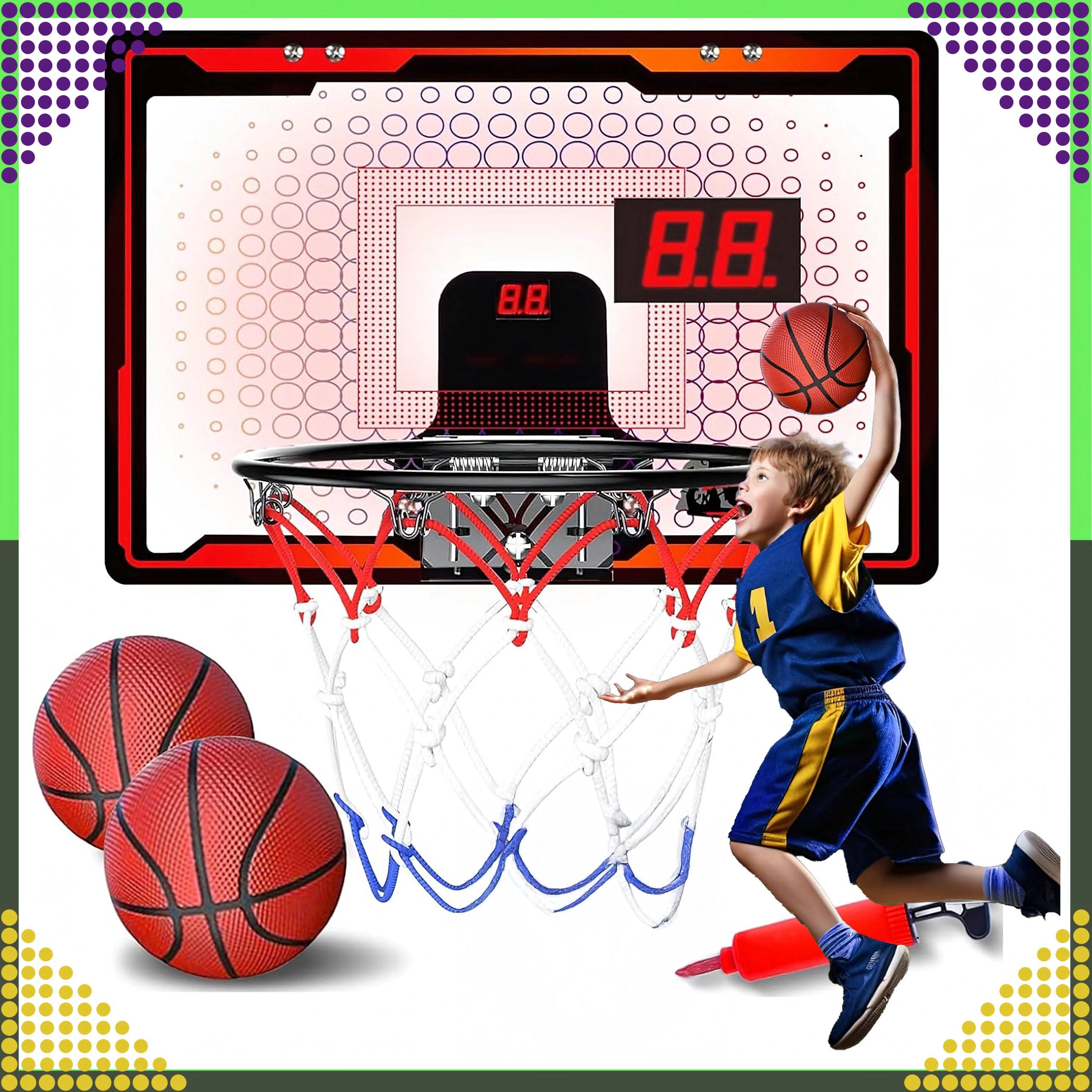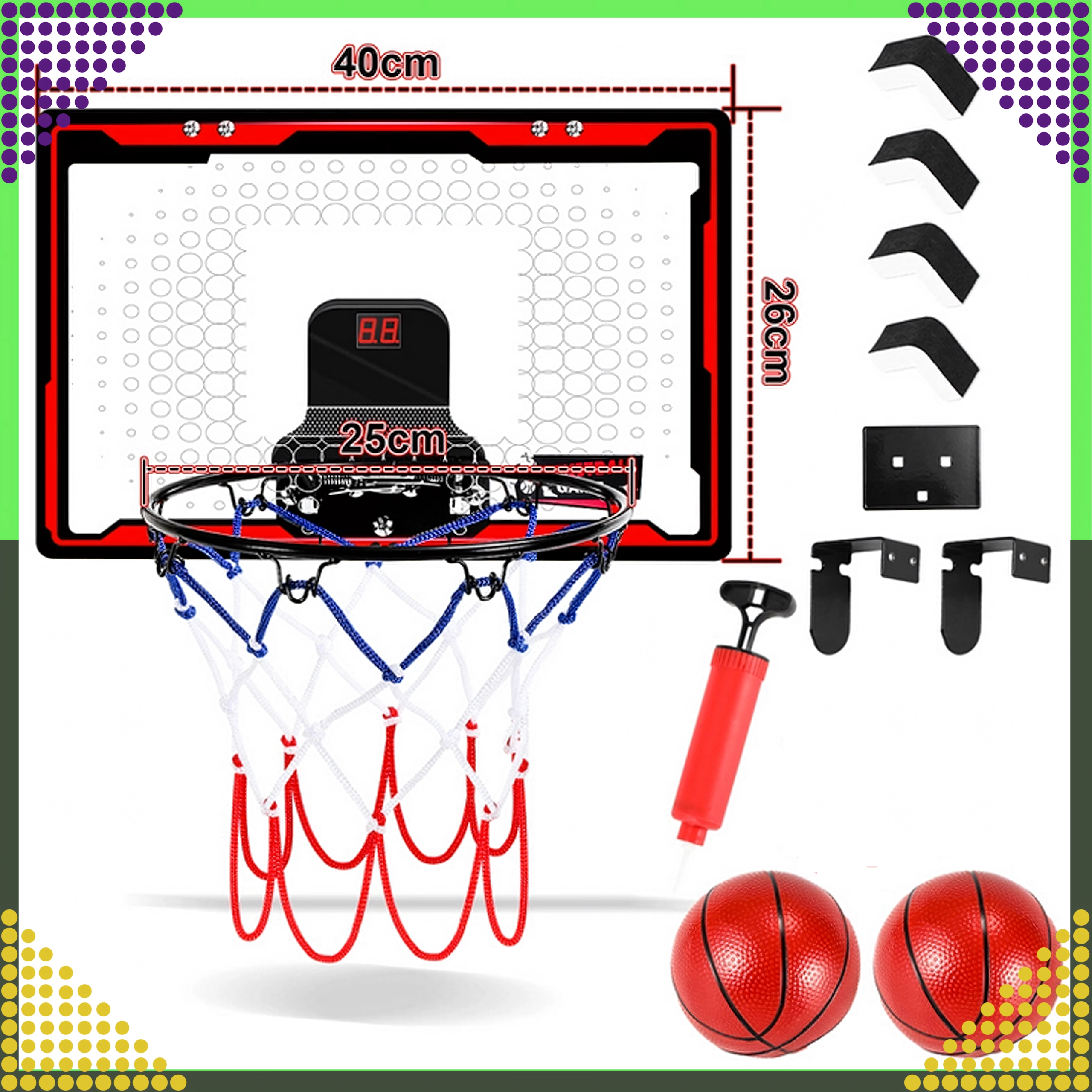 Interaktívny mini basketbalový kôš 3 v 1 je ideálnou voľbou na domáce hranie. Integrovaný LCD displej na sčítavanie bodov motivuje k zdravej súťaživosti, zvukové efekty dodajú každému košu šťavu a pevná konštrukcia zaistí dlhú životnosť aj pri častom používaní.