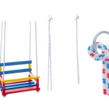 Štýlová farebná drevená hojdačka pre deti od 3 rokov prináša veľa zábavy doma aj na záhrade. Ponúka stabilné a bezpečné prevedenie, pohodlné sedadlo 38 × 30 cm a nosnosť 80 kg.