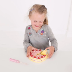 Hra s tortou rozvíja sociálne zručnosti, komunikáciu a zdieľanie. Kvalitné spracovanie z dreva zaisťuje dlhú životnosť a príjemný hmatový zážitok. Perfektný doplnok k detským kuchynkám a potravinovým setom.