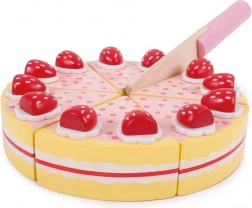 Roztomilá drevená torta s jahodami od Bigjigs Toys nadchne malých kuchárov aj cukrárov. Obsahuje 6 odnímateľných kúskov spojených suchým zipsom a drevený nôž na bezpečné krájanie. Podporuje jemnú motoriku, fantáziu a rolové hry v detskej kuchynke.
