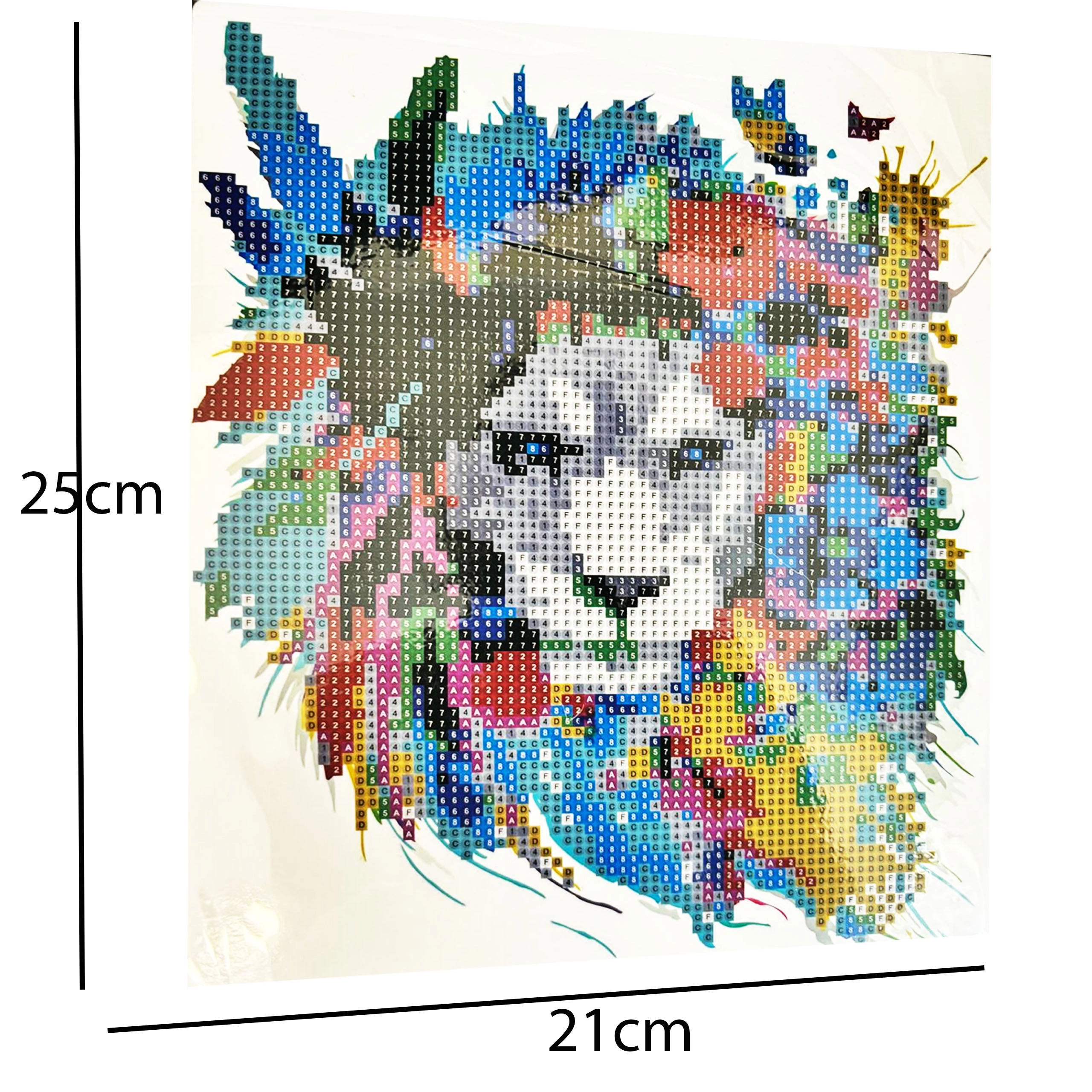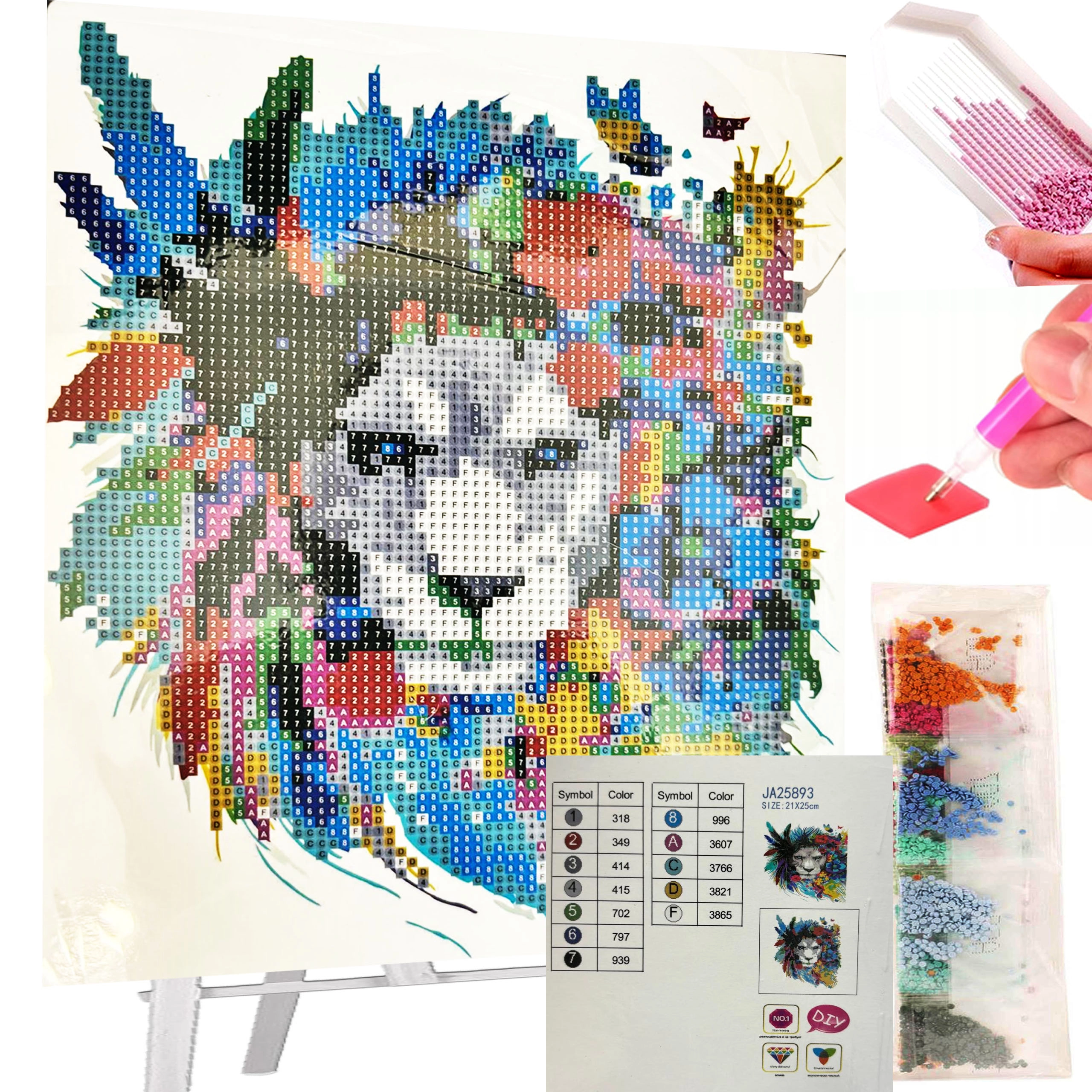 Objavte kreatívnu sadu na diamantové maľovanie s rozmerom 21 × 25 cm a bielym stolovým stojanom. Kompletný balíček na pohodové tvorenie: samolepiace plátno, farebné kamienky, aplikátor s voskom a triediaca miska. Skvelý darček pre deti aj začiatočníkov, ktorý prináša relax, zábavu a trblietavý výsledok pripravený na vystavenie.