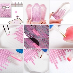 Drážkovaná miska zarovná kamienky do radu, takže ich pero ľahko naberie a umiestni na správne miesto na plátne.