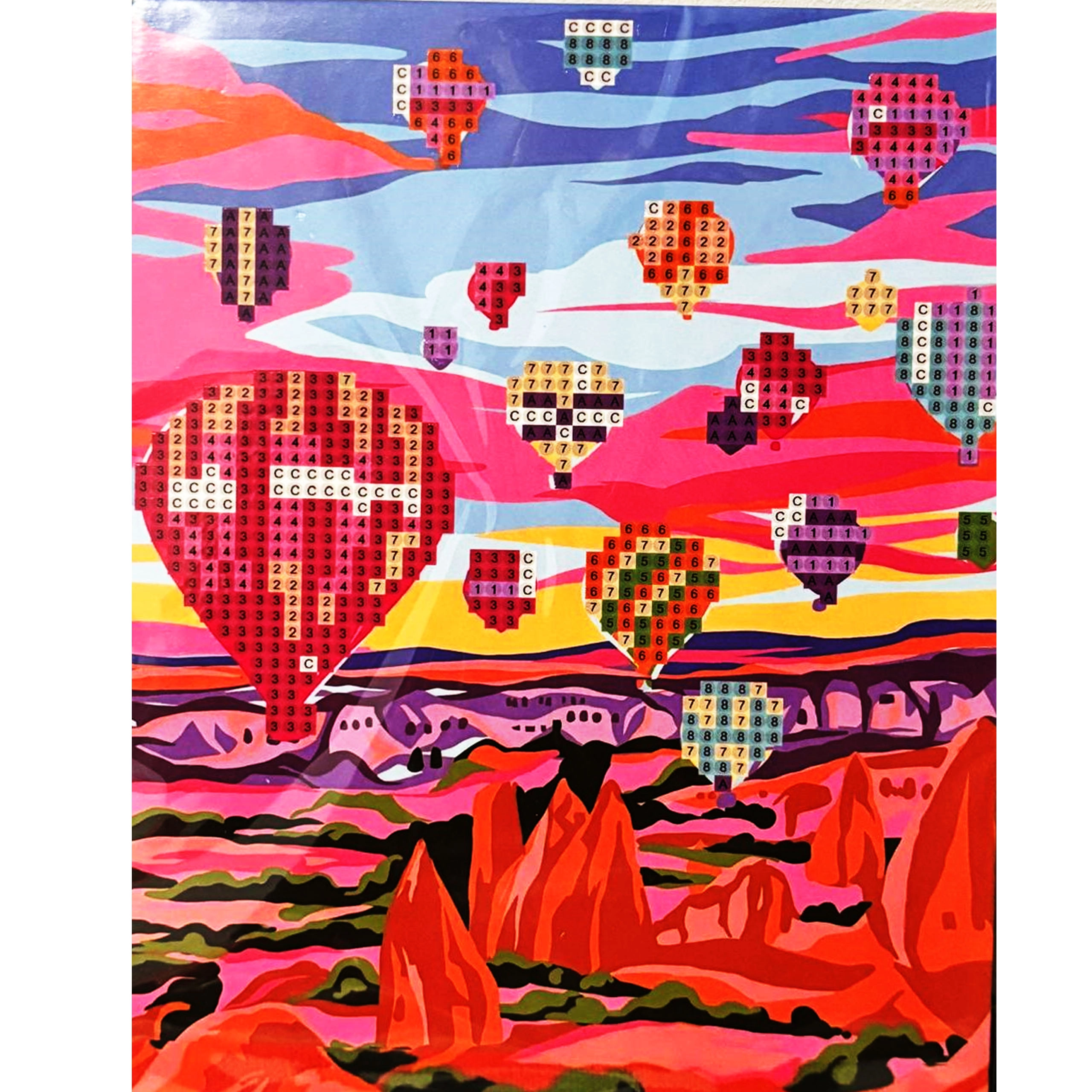 Súčasťou je aj biely mini stojanček na vystavenie hotového obrázka – perfektná dekorácia na poličku či stôl a skvelý darček.