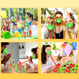 Masky s elastickými pásikmi pohodlne sedia deťom aj dospelým. Pružný „jazyk“ umožní zábavne triafať a chytať ciele – bezpečne a s veľkou dávkou smiechu.