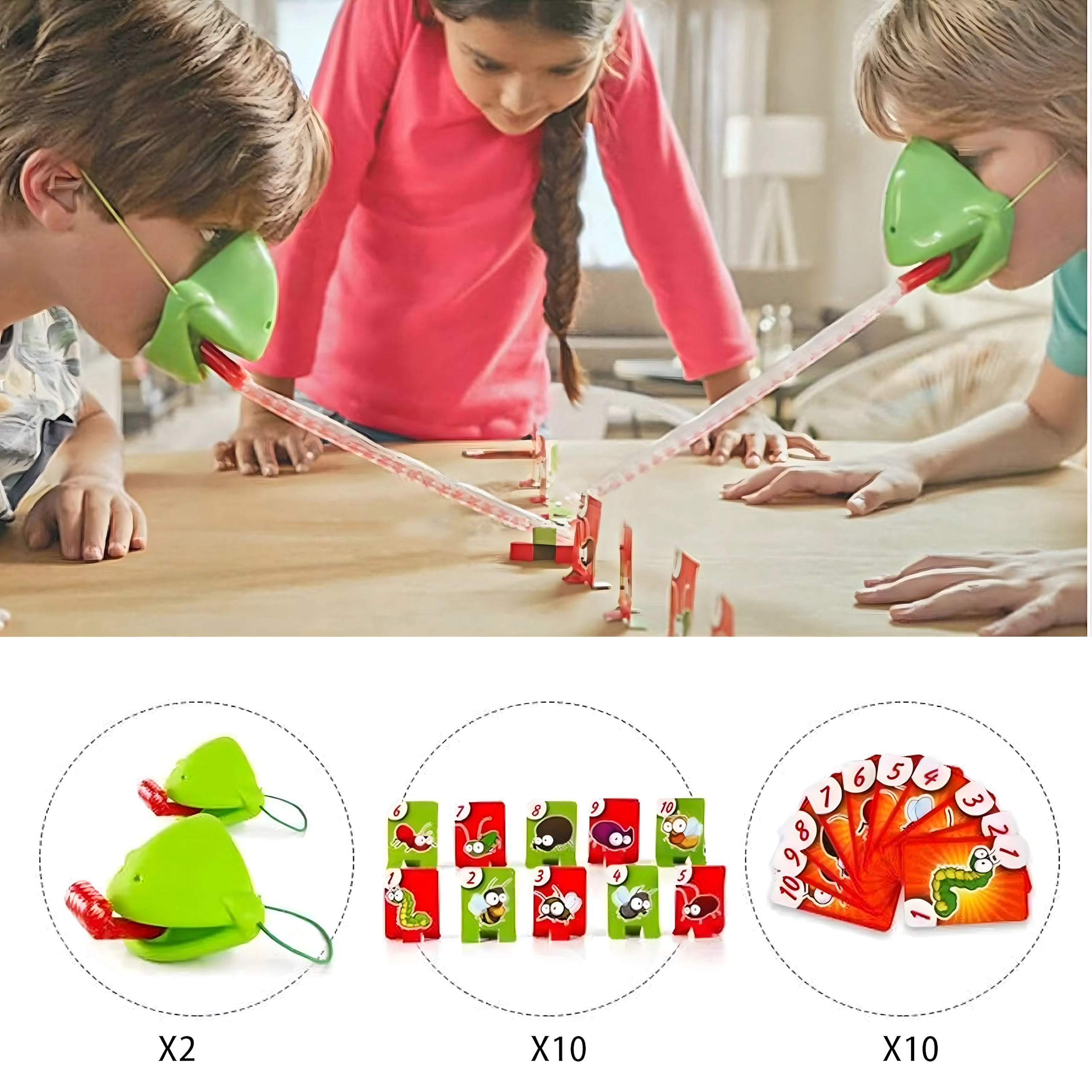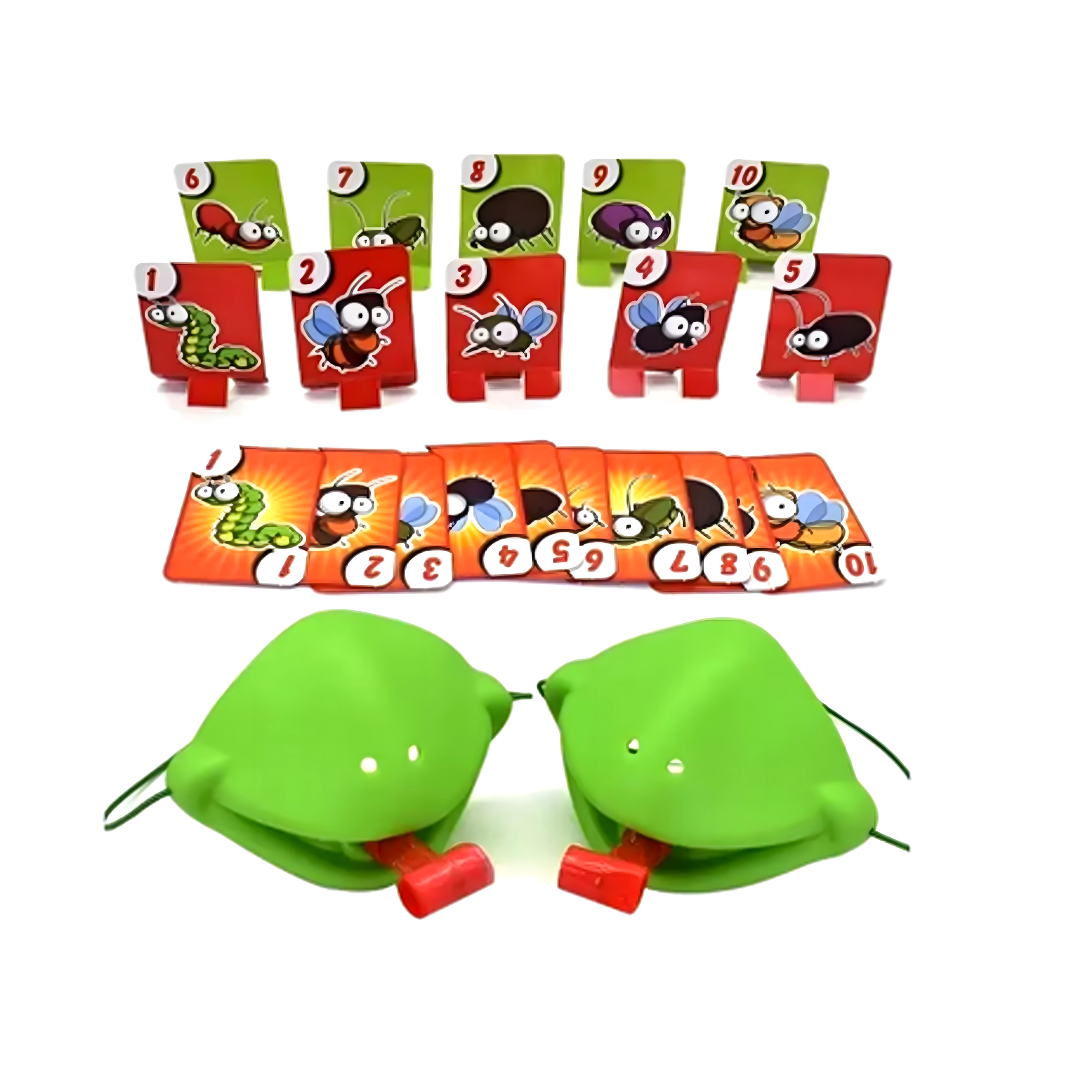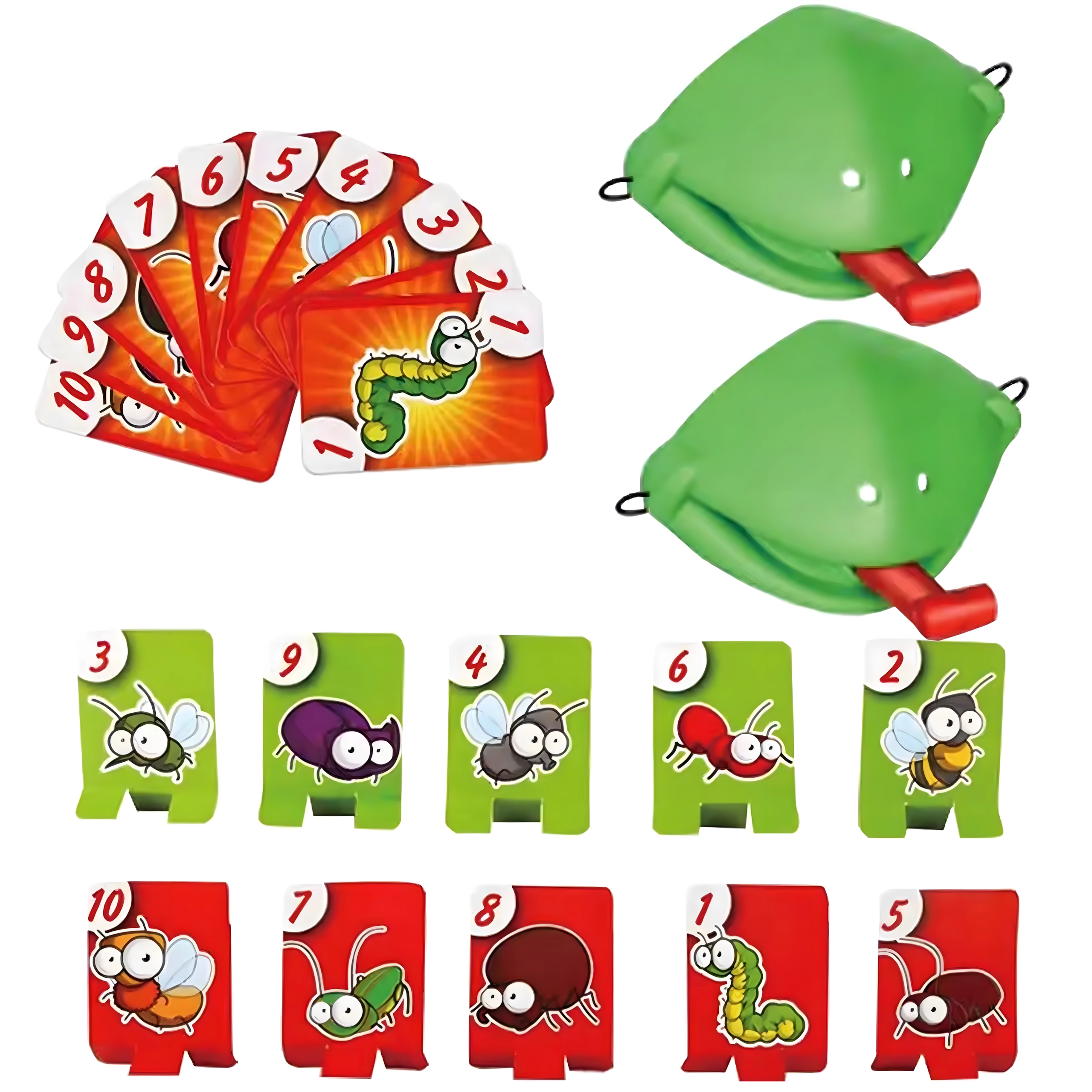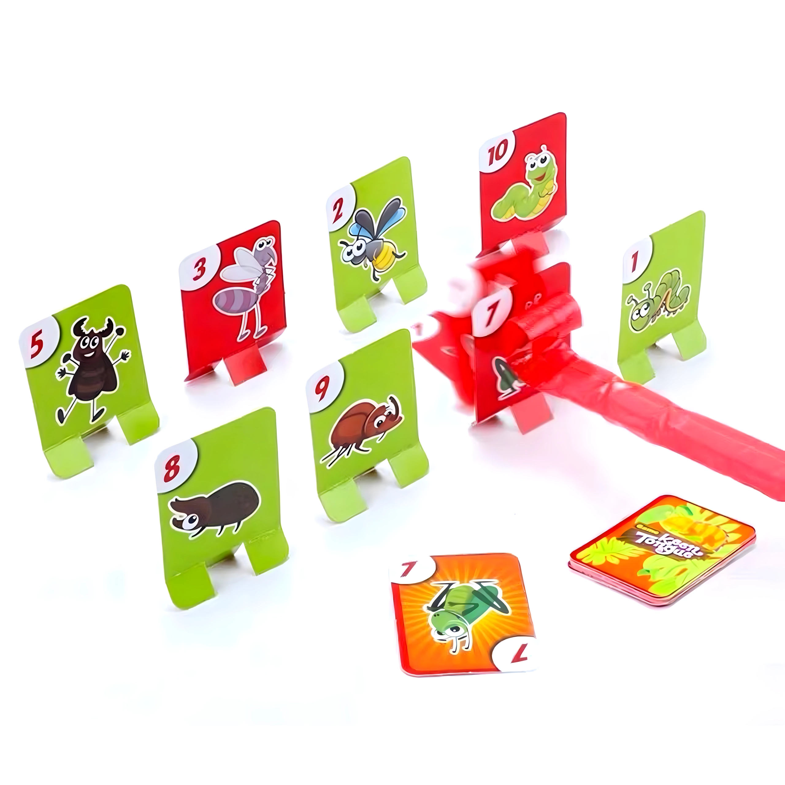Premeňte sa na žabu a vydajte sa na lov chrobákov! Nasadíte masku, zamierite a vystrelíte jazykom na cieľové karty – kto chytí správny obrázok alebo číslo najrýchlejšie, získava body. Hra je ľahko pochopiteľná, pripravená behom chvíľky a nadchne malých aj veľkých hráčov.