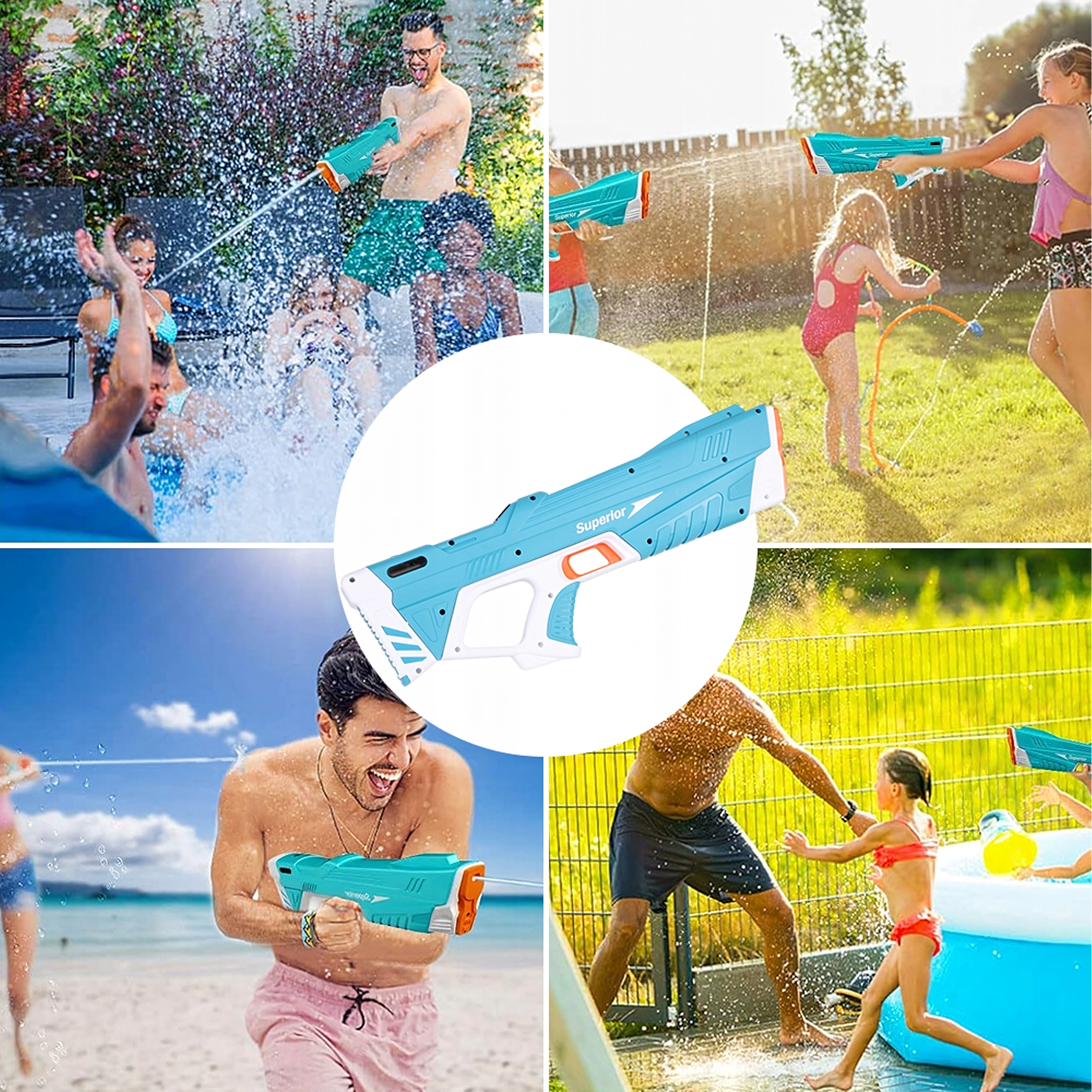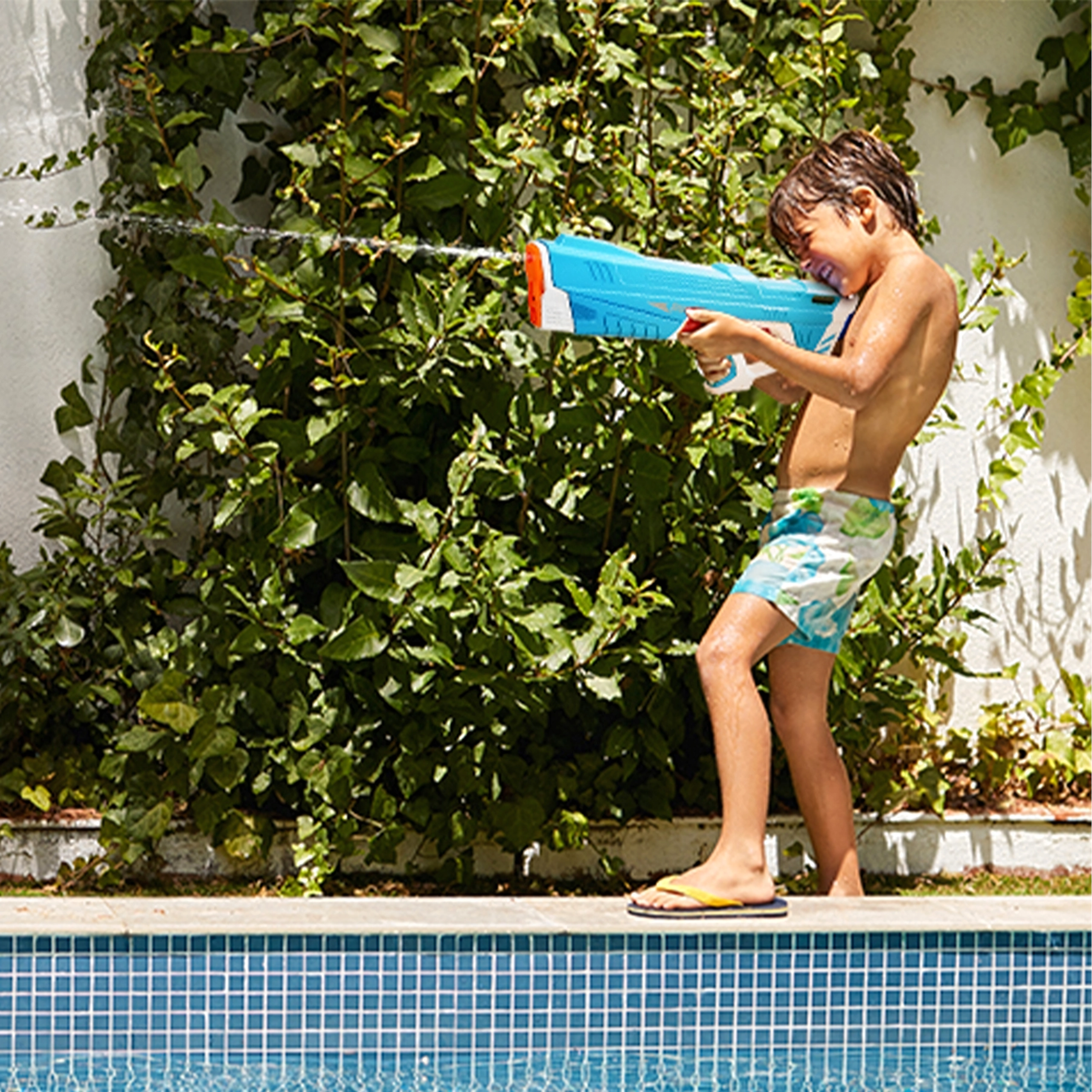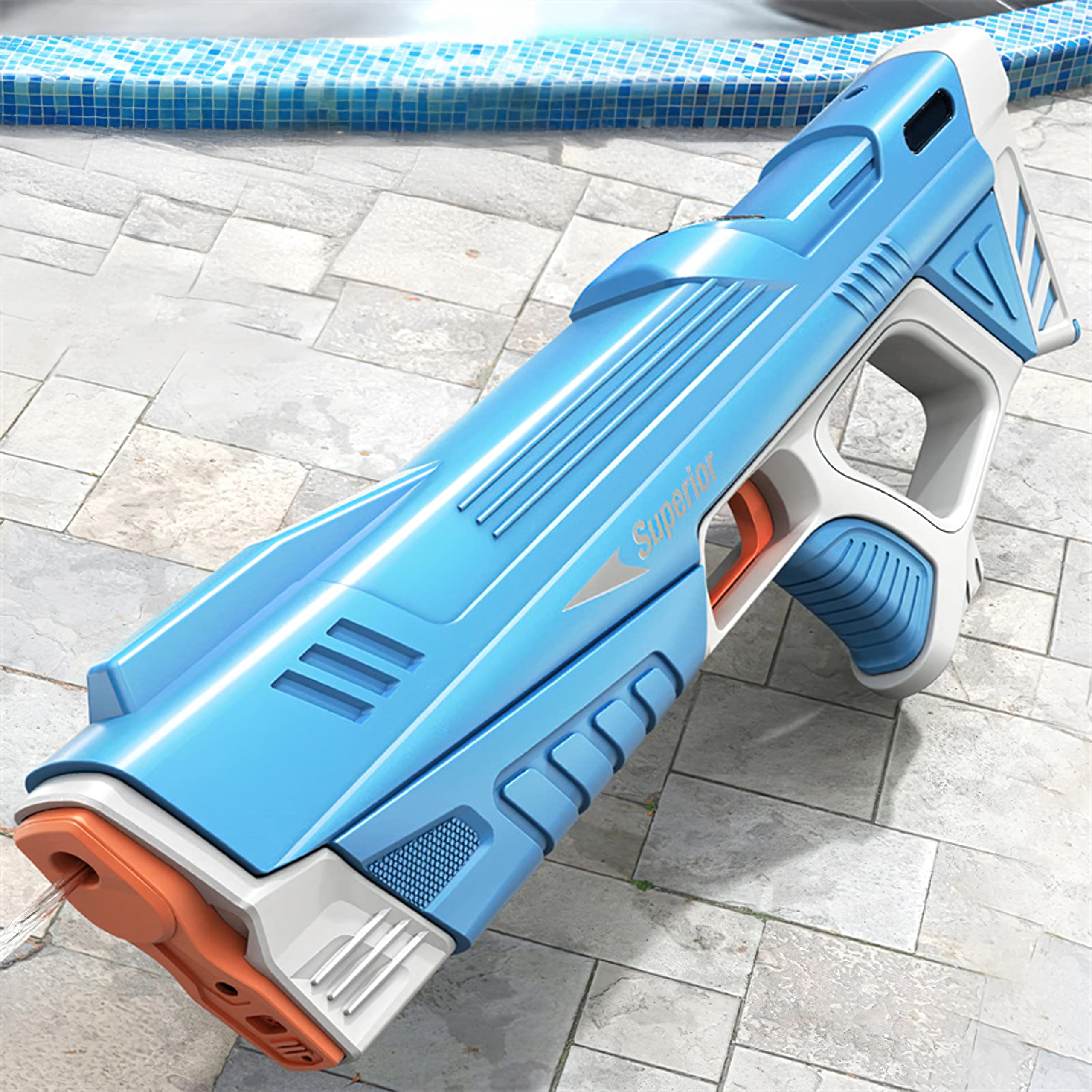 Vstavaný motor zabezpečuje rýchle a plynulé striekanie vody – stačí stlačiť spúšť a zábava začína.