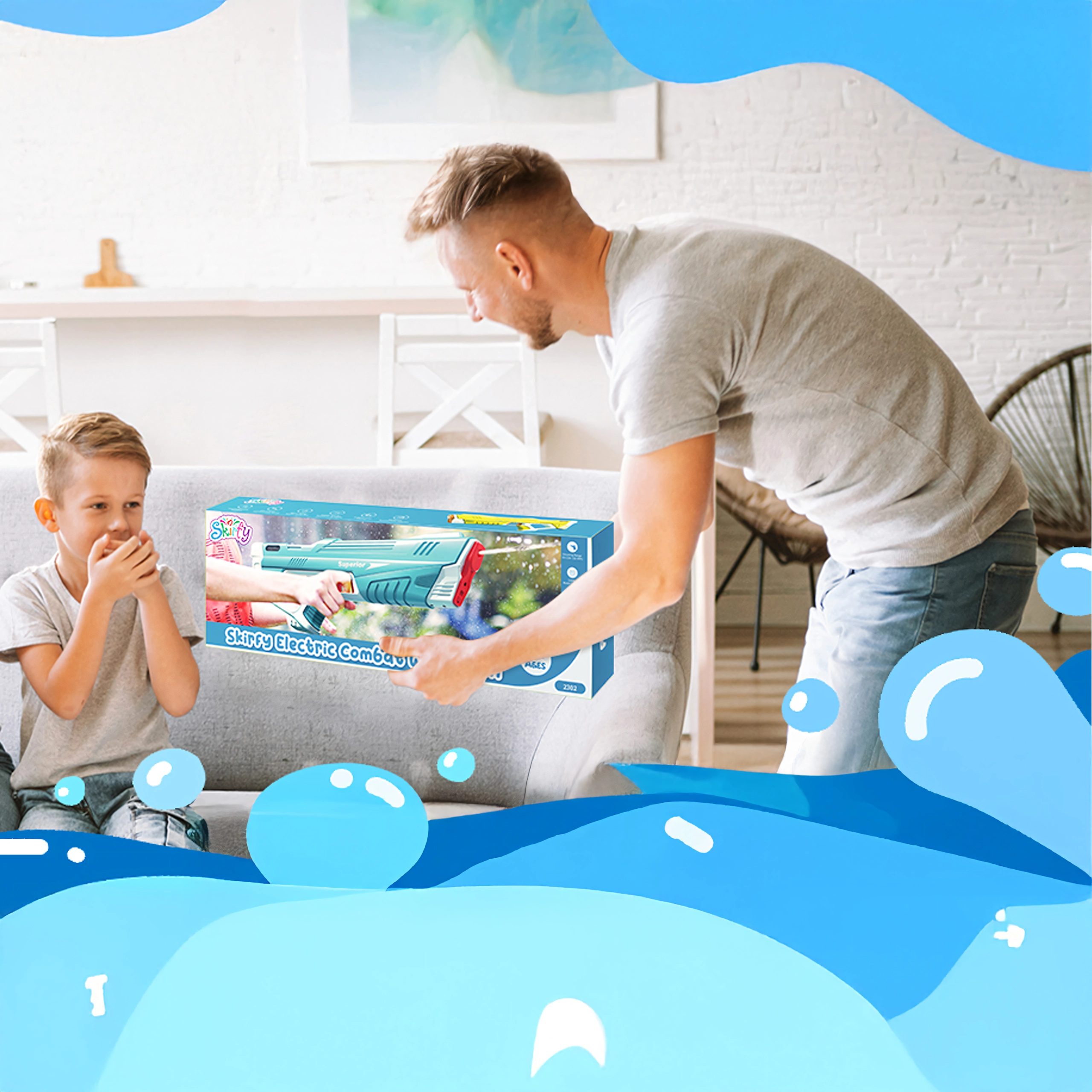 Elektrická vodná pištoľ prináša komfort bez pumpovania a dlhú výdrž vďaka nabíjaniu cez USB. Ergonomická rukoväť, odolná plastová konštrukcia a dynamický prúd vody zaistia akčné súboje pri bazéne aj na pláži.