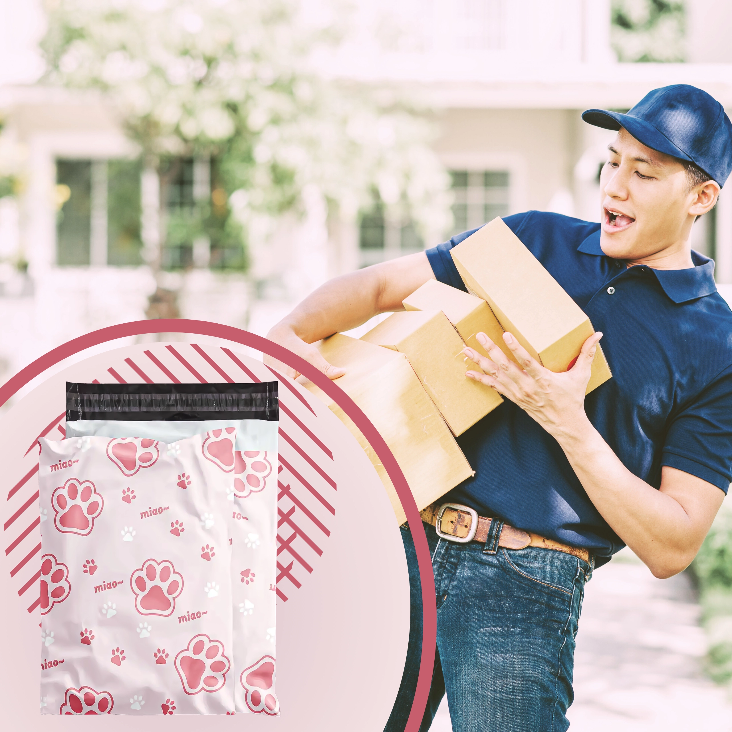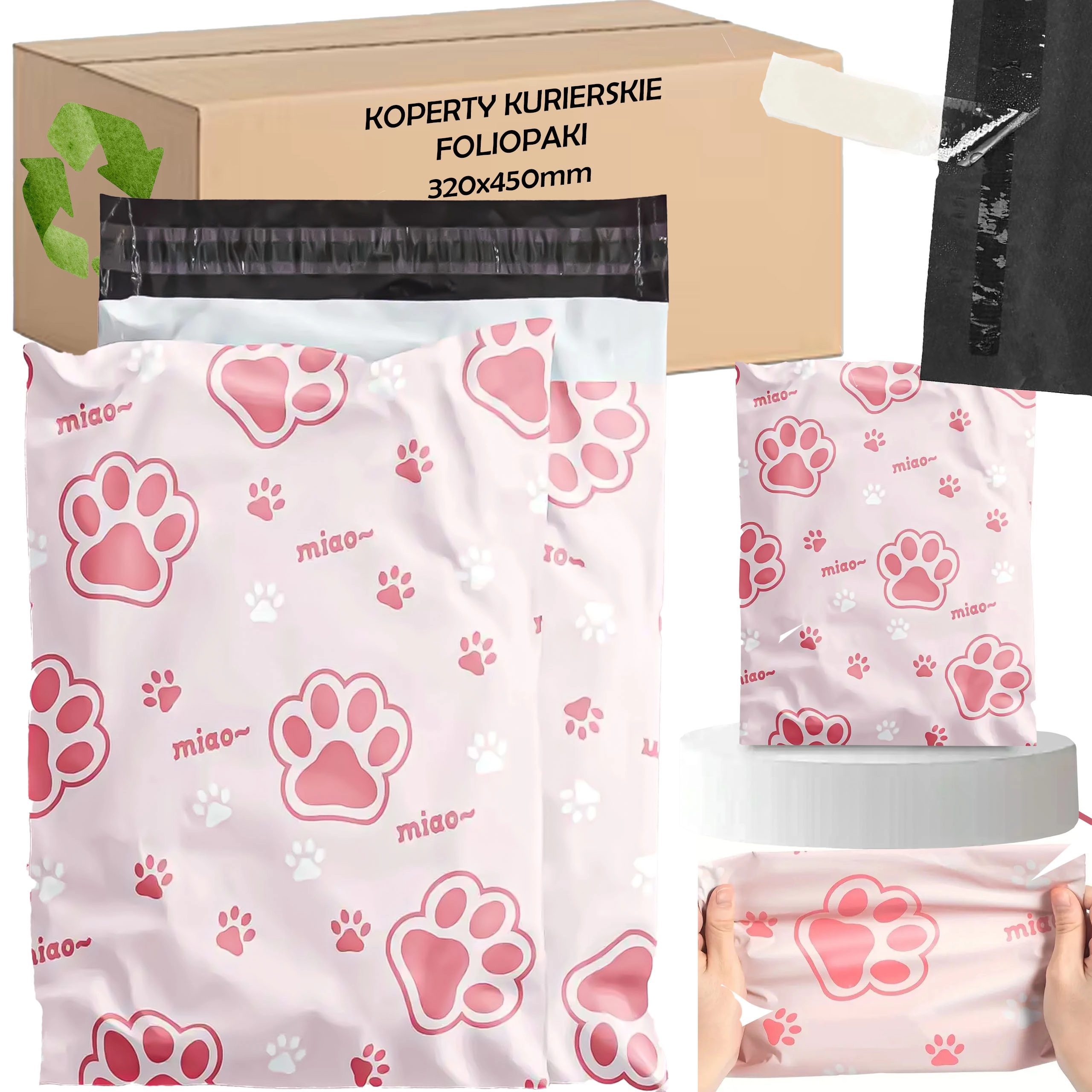 Štýlové a odolné poly mailery s motívom mačacích tlapiek zjednodušia vaše balenie objednávok. Vďaka samolepiacemu pásiku uzavriete zásielku behom sekúnd, zatiaľ čo pevný a vodoodolný materiál chráni obsah pri preprave. Rozmer 320 × 450 mm sa hodí pre textil, doplnky, krabice menšieho formátu a ďalší tovar.