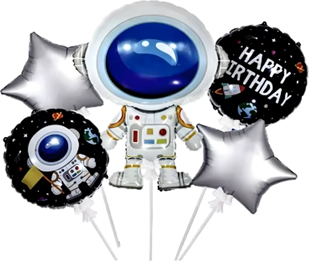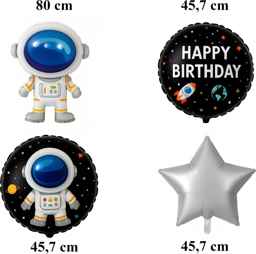Vytvorte kúzelnú vesmírnu atmosféru behom chvíľky. Táto sada 5 kusov fóliových balónikov kombinuje astronauta a hviezdy, ktoré sa stanú výraznou dominantou každej oslavy. Balóniky sú ľahké, odolné a vhodné na plnenie héliom alebo vzduchom.