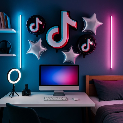 Vytvorte si atmosféru sociálnych sietí na vlastnej oslave! Táto sada balónikov s motívom TikTok dodá dekorácii moderný vzhľad a skvele sa hodí na teen party, narodeniny aj tematické večierky. Veľká fóliová notička je neprehliadnuteľným stredobodom, guľaté balóny s potlačou a strieborné hviezdy doplnia výzdobu do perfektného celku.