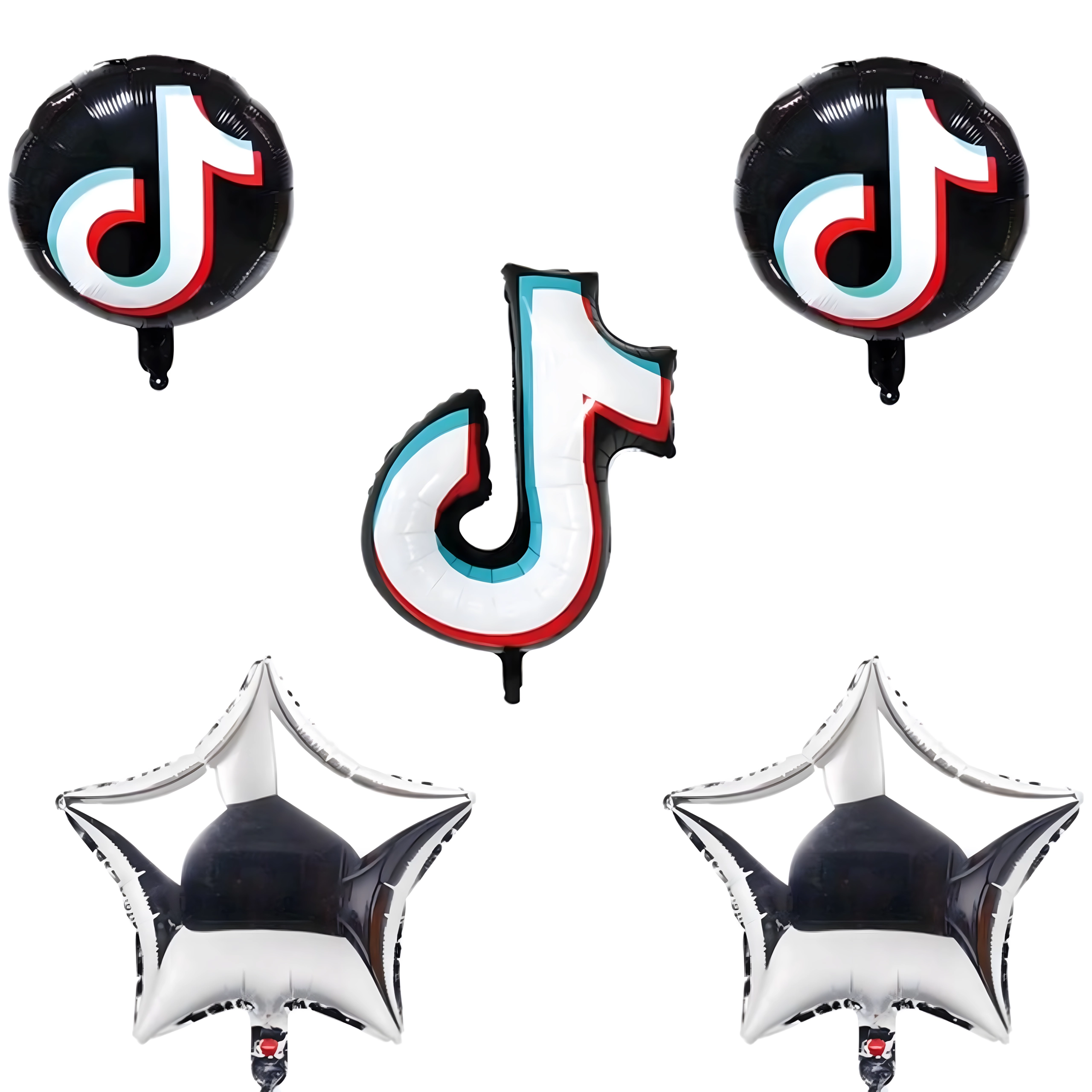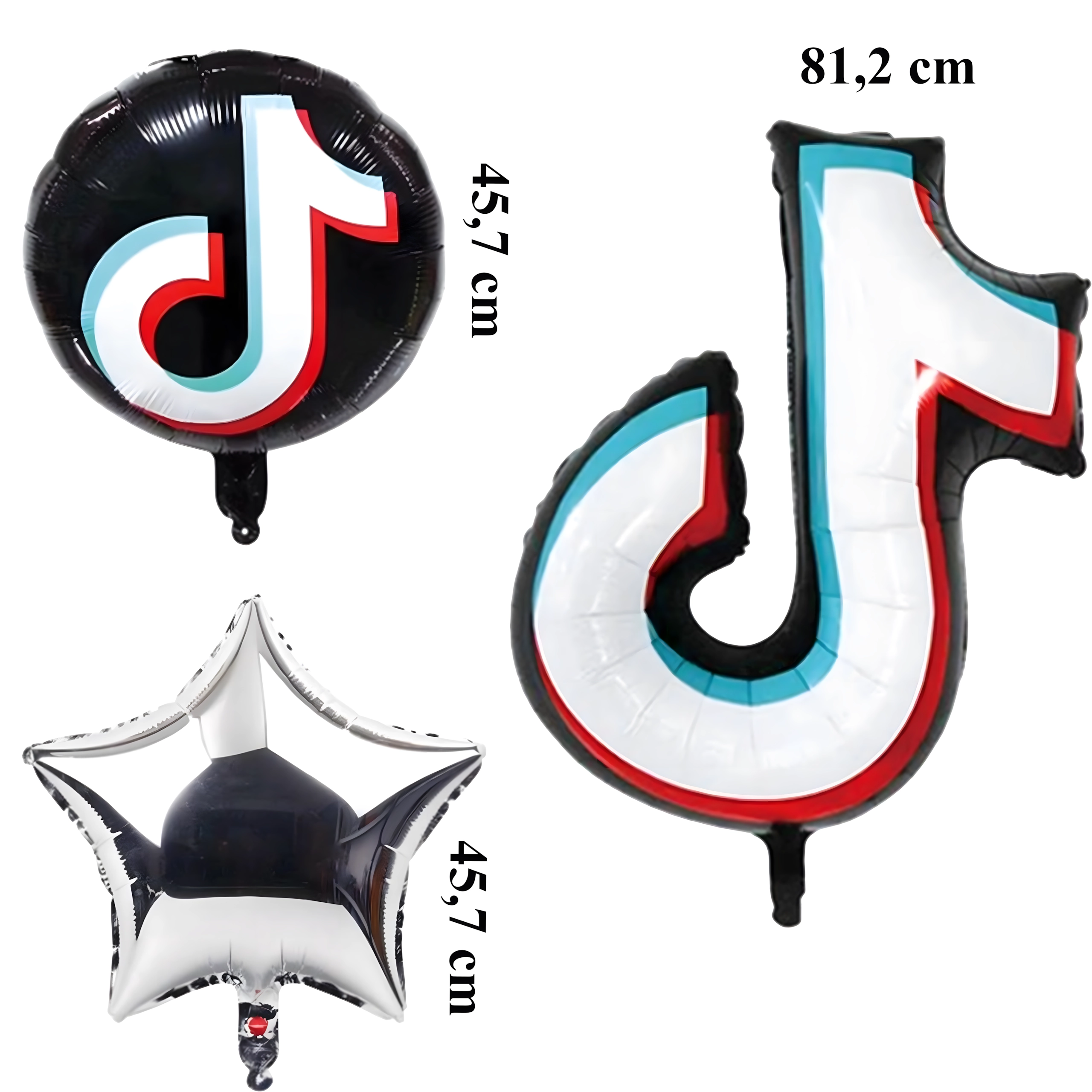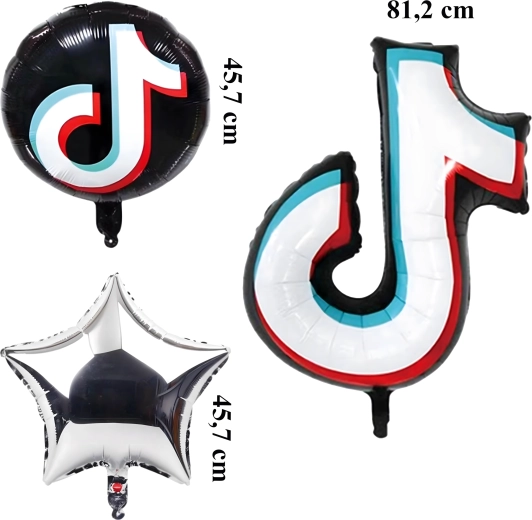 - Obsah sady: 1× fóliová notička 81,2 cm, 2× čierny guľatý balónik TikTok 45,7 cm, 2× strieborná hviezdička