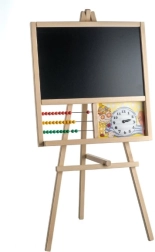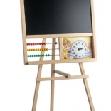 Táto drevená stojanová tabuľa je ideálna pre detskú izbu malého školáka. Je vybavená počítadlom a veselými ručičkovými hodinami, ktoré ponúkajú viac možností pre zábavné poznávanie.