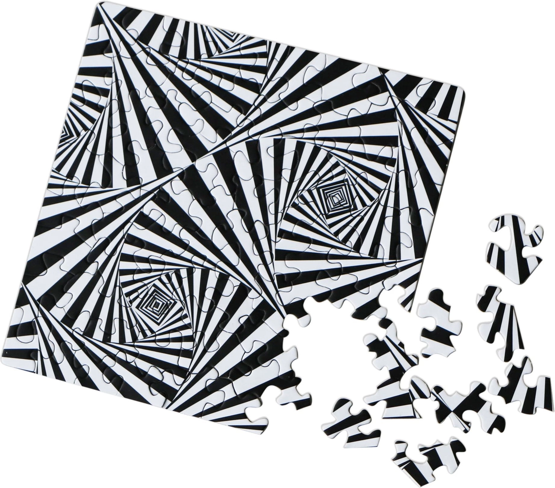 Štvorcové puzzle Q Shimmer: Ilúzie poteší každého, kto hľadá kompaktné a štýlové skladanie. Vďaka netradičným tvarom dielikov prináša príjemnú výzvu a zároveň originálny vizuálny efekt po zložení.