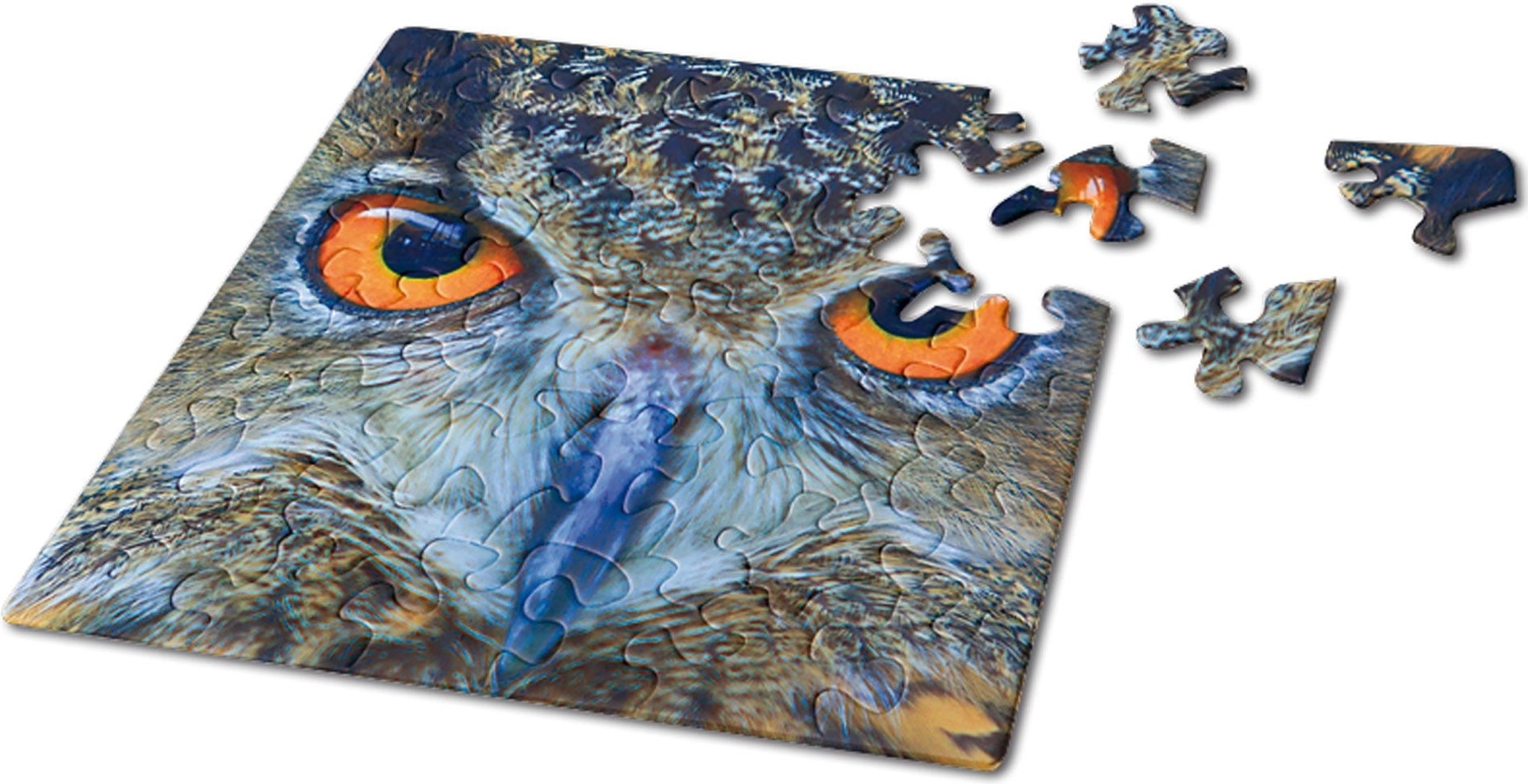 Hotové puzzle má kompaktný rozmer, takže sa zmestí na stôl aj políčku. Precízna tlač podčiarkuje detailný motív sovy a zaručuje živé farby a ostré línie. Skvelá voľba pre deti aj dospelých, ktorí ocenia kvalitné a štýlové puzzle.