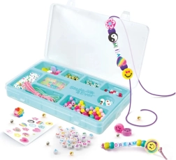 Kreatívna sada Projekt Glam prináša deťom od 8 rokov nekonečnú zábavu pri tvorbe jedinečných šperkov. V balení nájdete viac než 300 komponentov vrátane farebných korálikov, pozlátených a postriebrených korálikov, písmenkových korálikov aj korálikov svietiacich v tme. Dve farebné elastické šnúrky uľahčia navliekanie aj dokončenie náramkov – skvelé pre rozvoj kreativity a jemnej motoriky.
