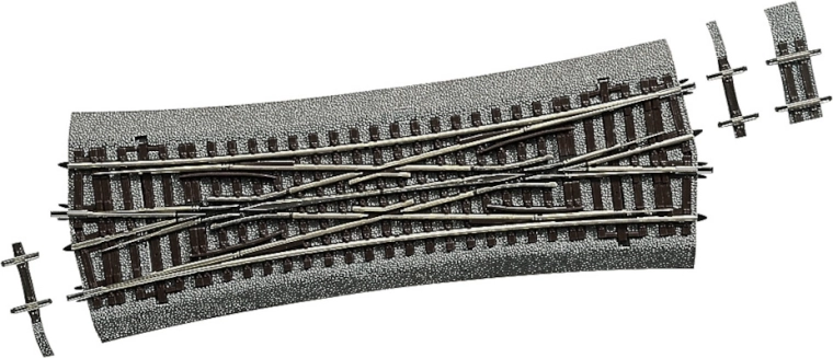 Krížová výhybka ROCO LINE DKW15 s podložím kombinuje dve priame koľaje G1 (dĺžka 230 mm) zvierajúce uhol 15° s polomerom odbočenia 1050 mm. Reprodukuje Bäslerovu konštrukciu s vonkajšími jazykmi a vďaka kompletnej polarizácii zabezpečuje plynulý prejazd aj pri nízkych rýchlostiach.
