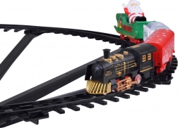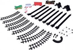 - Lokomotíva + 3 vagóny (biely uhoľný, červený vozeň, zelené sane so Santom)