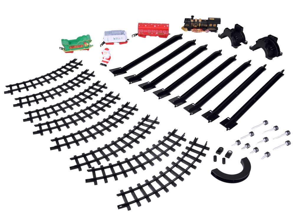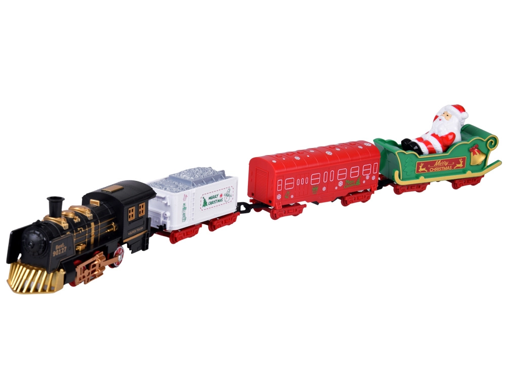 Súpravu tvorí čierna lokomotíva a tri rôzne vagóny: biely uhoľný s nápisom Merry Christmas, červený vozeň s ozdobením a zelené sane so Santom.
