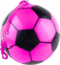 Ružová gumená lopta s priemerom 22 cm vo vzore futbalovej lopty je skvelá na hranie doma aj vonku. Je ľahká, pružná a odolná, výborne sa odráža a vďaka pružnému úchytu ju možno pripevniť na šnúrku na tréning postrehu a zábavné hry.