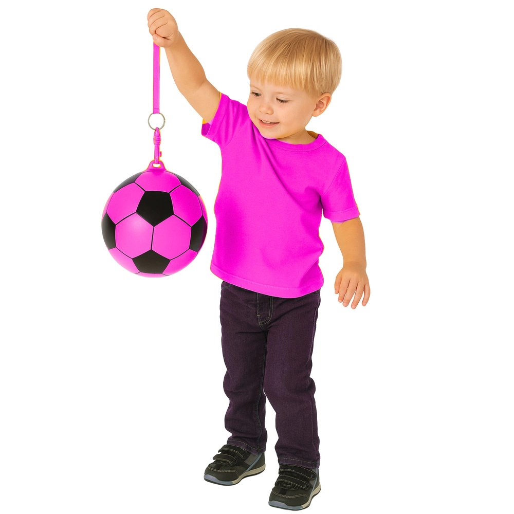 Praktický úchyt umožňuje pripevniť šnúrku alebo karabínku – hodí sa na hry na presnosť, tréning reflexov a bezpečné kopanie bez neustáleho behania za loptou. Ideálna pre deti od 3 rokov.