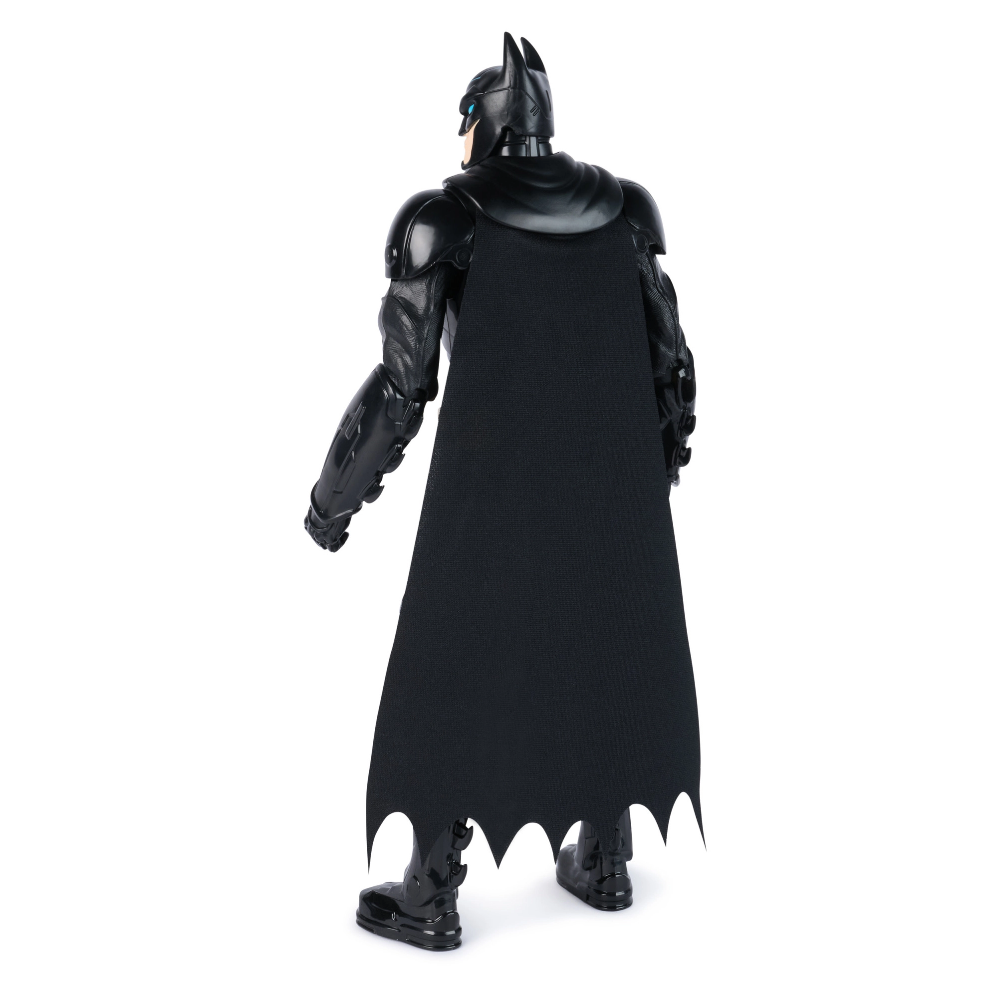 Čierne brnenie s modrými akcentmi, žltý opasok a emblém netopiera podčiarkujú ikonický štýl postavy z DC COMICS.