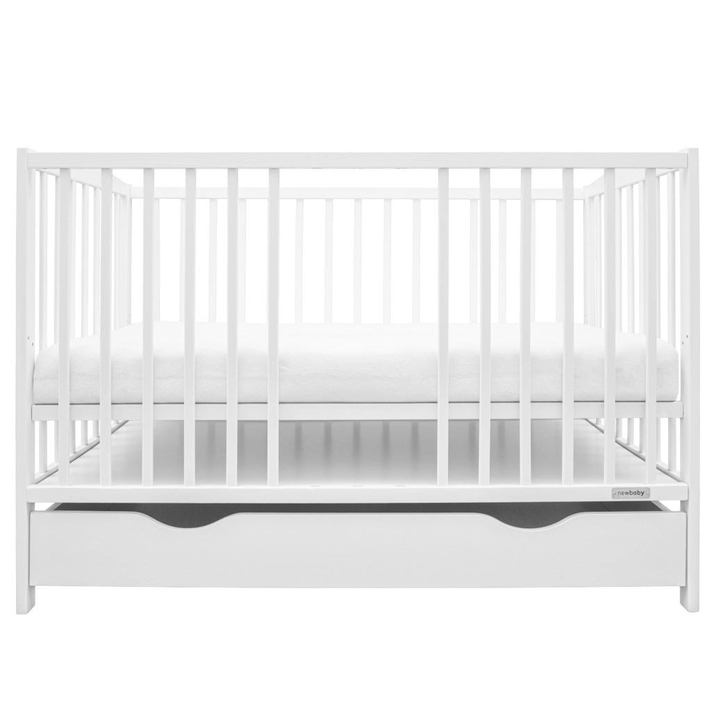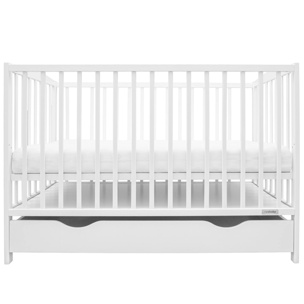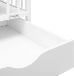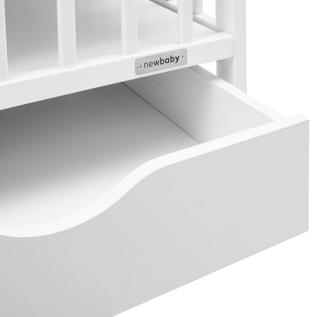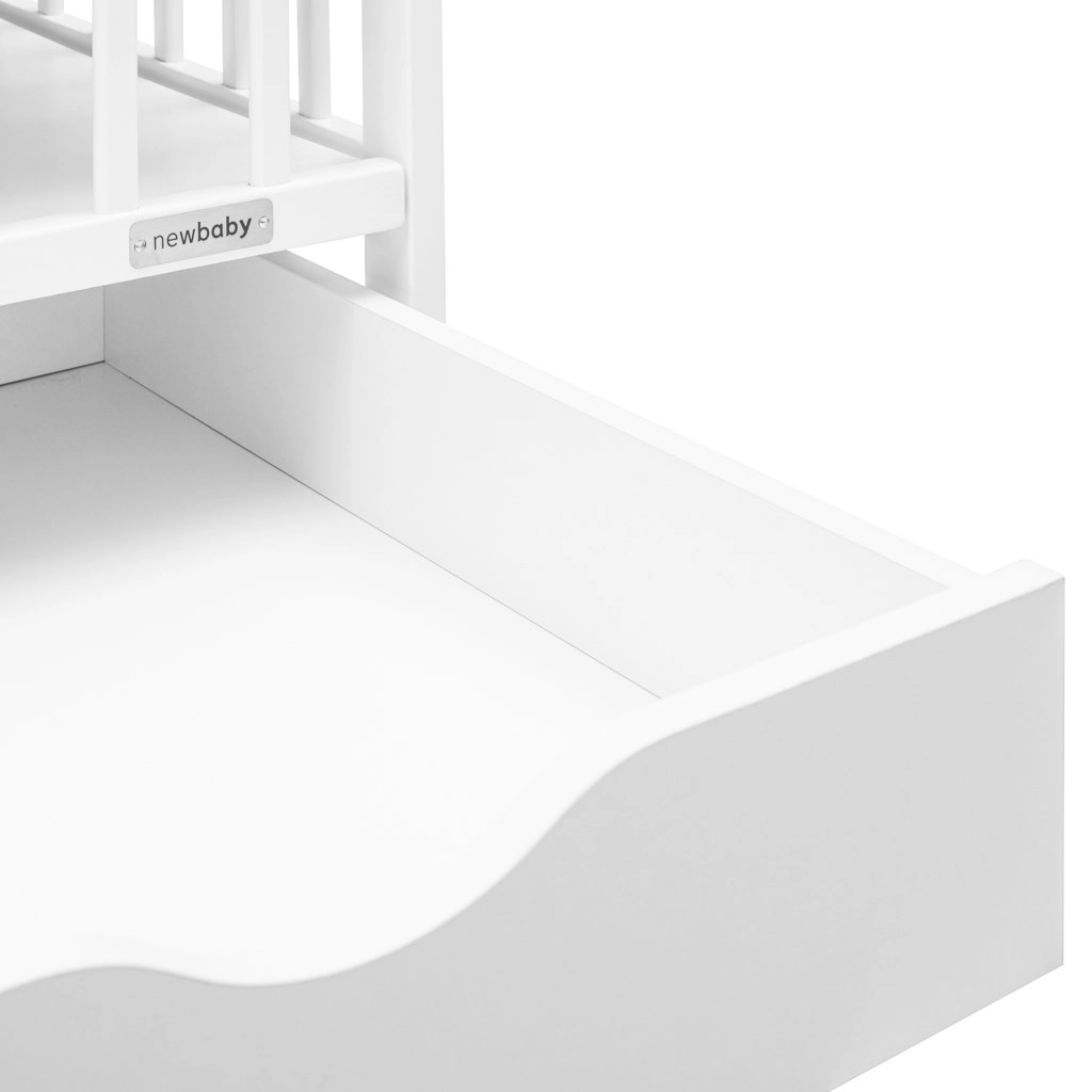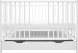 Praktická priestranná zásuvka na guľôčkových pojazdoch je integrovaná pod lôžkom, nedotýka sa podlahy a poskytne miesto na posteľnú bielizeň aj nevyhnutnosti na dosah ruky. Tri výškové úrovne roštu (22/38/51 cm) a tri vyberateľné priečky uľahčujú manipuláciu s dieťaťom a neskôr umožnia samostatné vyliezanie.