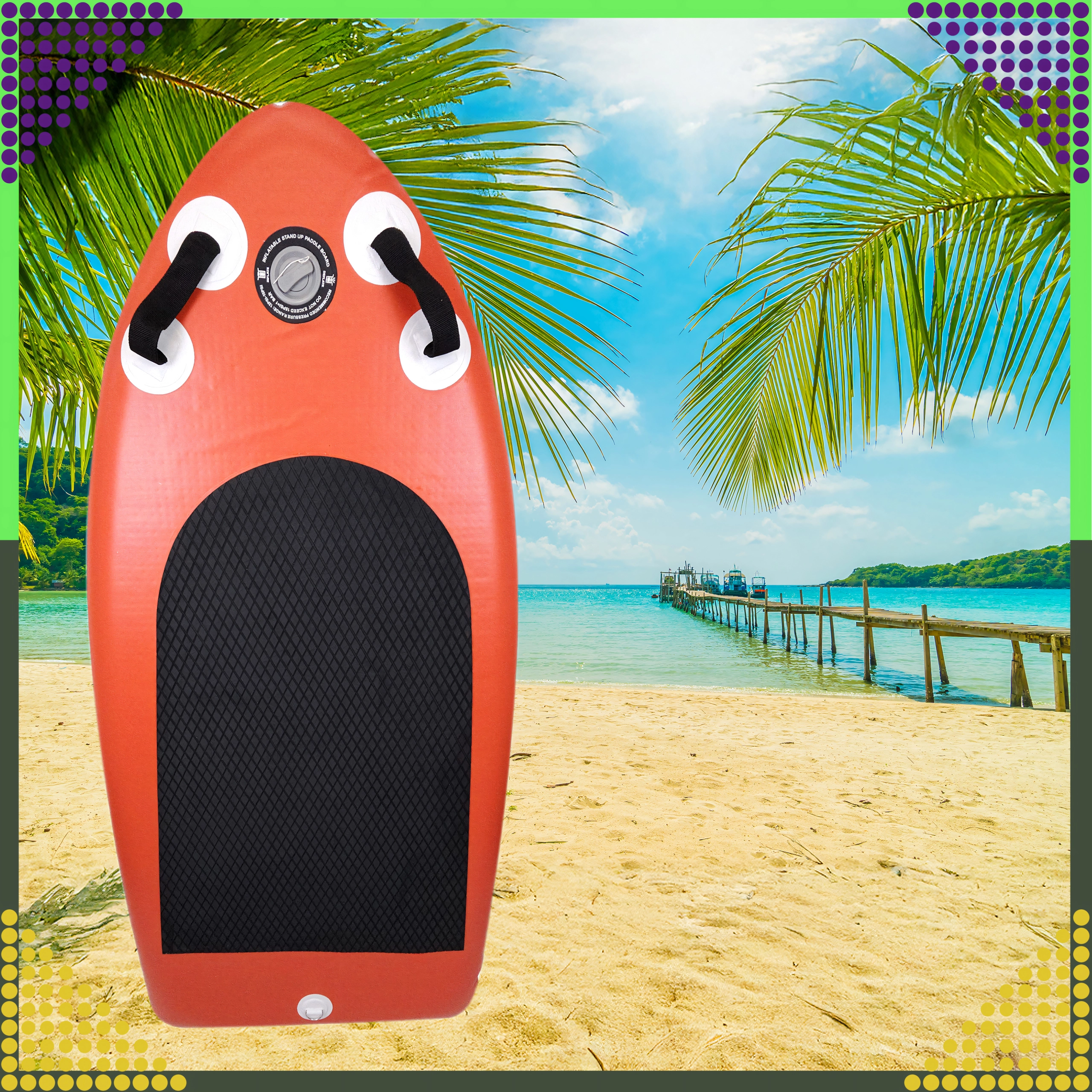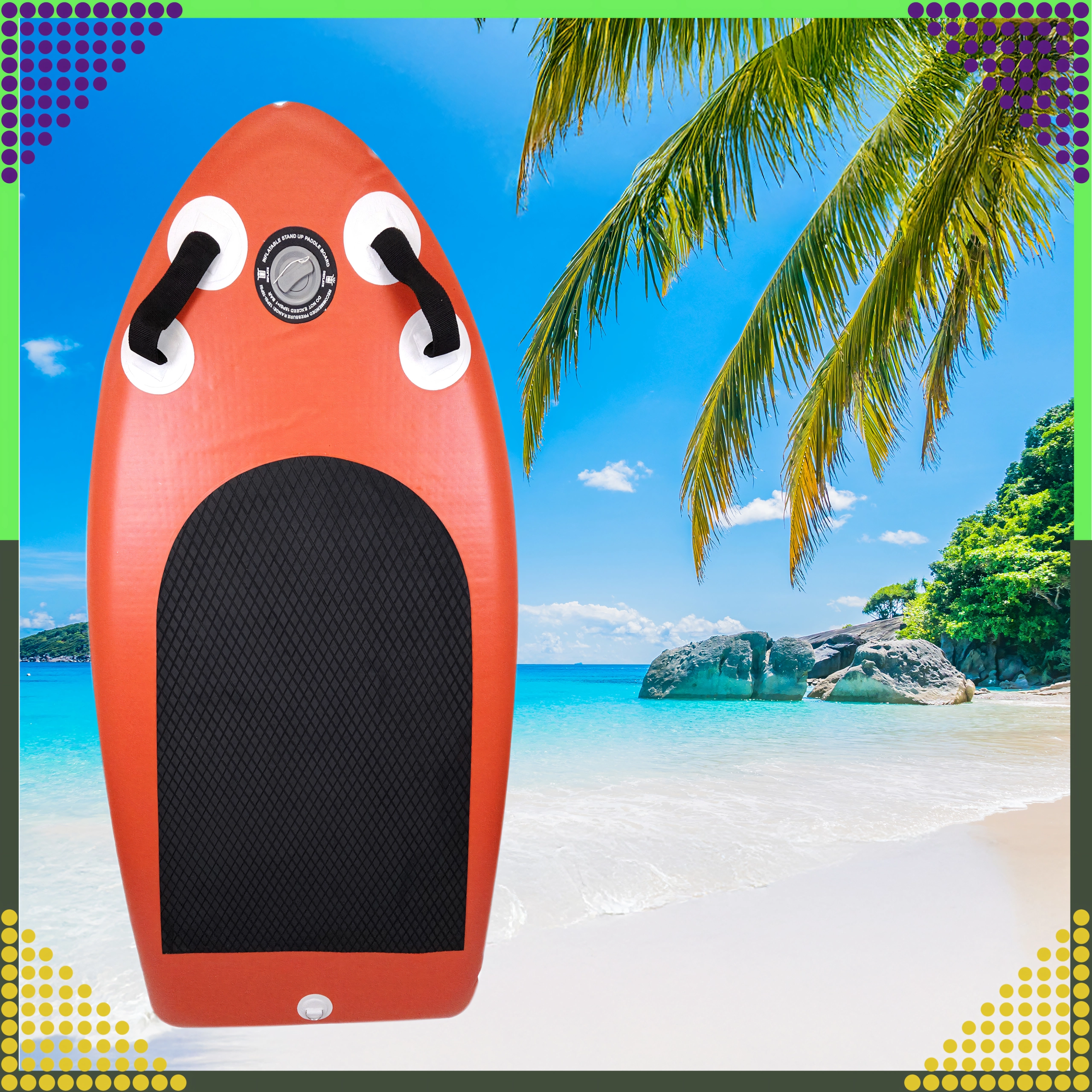 Tento mini paddleboard s dĺžkou 155 cm je ideálny na rekreačnú jazdu, prvé kroky na SUP aj hravé jazdenie vo vlnách. Nafukovacia konštrukcia s vysokotlakovým ventilom umožňuje rýchle a bezpečné nafúknutie, pričom protišmyková EVA pena s diamantovým vzorom dáva istotu pri státí aj kľaku. Vďaka kompaktným rozmerom sa skvele ovláda a ľahko prenáša v priloženom batohu.