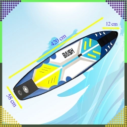 Tento univerzálny SUP je navrhnutý pre začiatočníkov aj pokročilých jazdcov. Dlhá a úzka silueta (420 × 58 × 12 cm) zabezpečuje efektívny sklz, stabilitu a rýchlosť na pokojnej vode aj dlhších tratiach. Protišmyková pena EVA s diamantovou štruktúrou zvyšuje istotu postoja a pohodlie aj počas dlhých jázd.