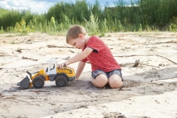 Skvelý parťák pre malých staviteľov – zvládne piesok, kamienky aj koberce a podporuje jemnú motoriku a fantáziu.