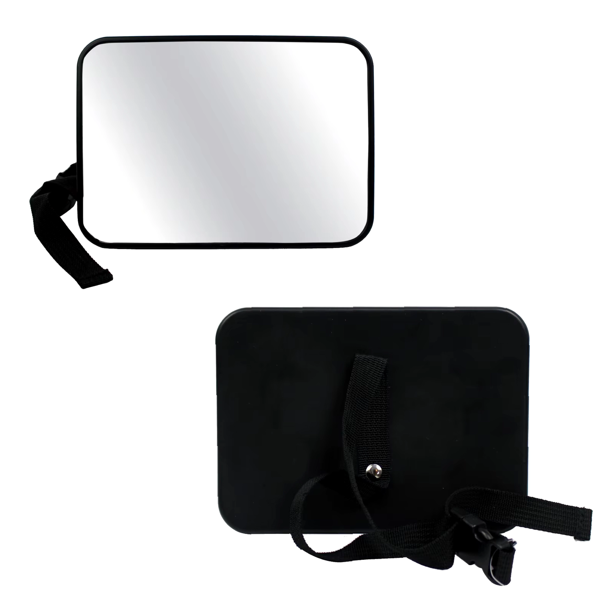Ľahká, ale odolná konštrukcia so silnými montážnymi pásmi zaručí pevné držanie aj pri dlhších cestách. Rozmer 18,8 × 13,5 cm poskytuje dostatočne veľkú odrazovú plochu, pritom neprekáža vo výhľade.