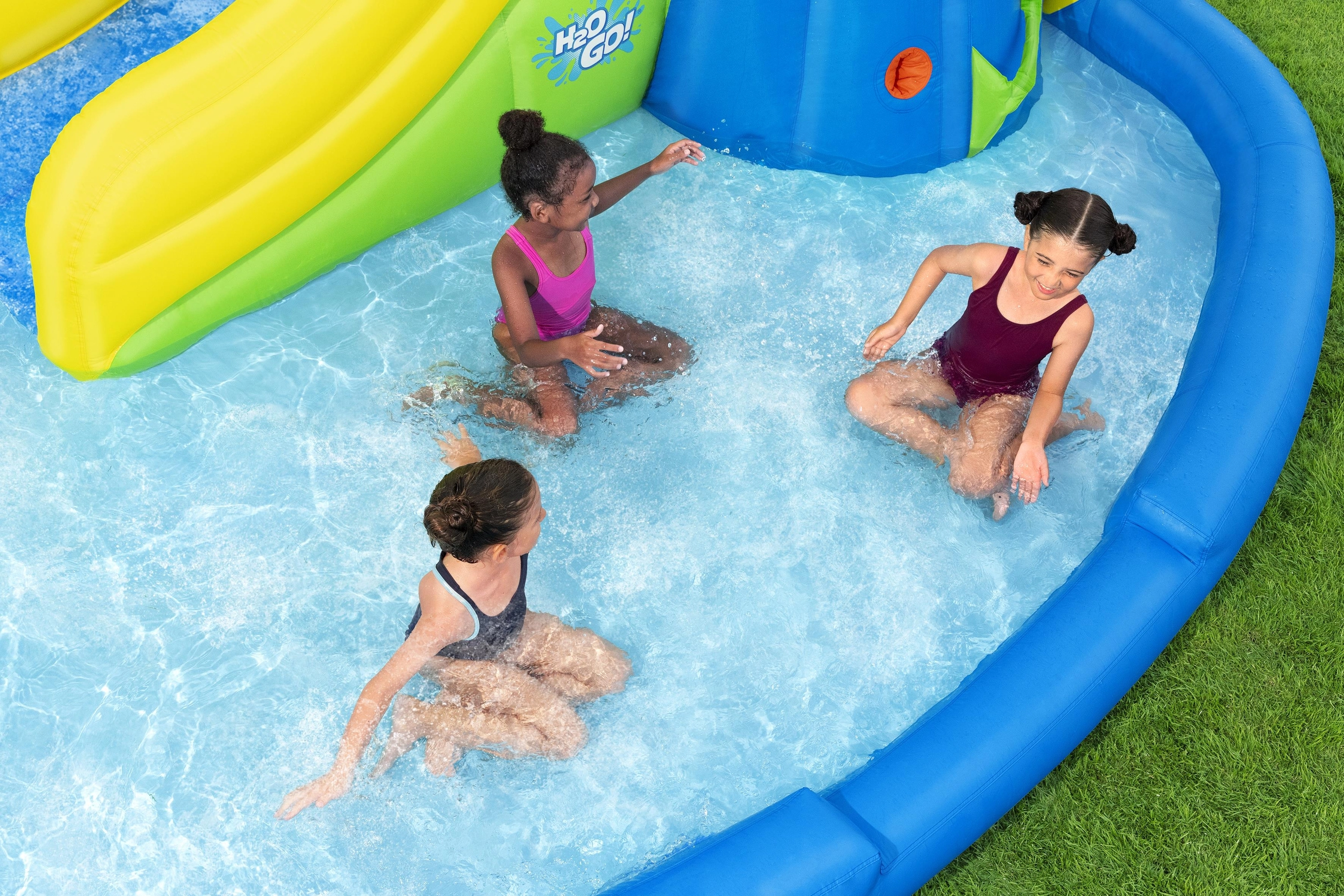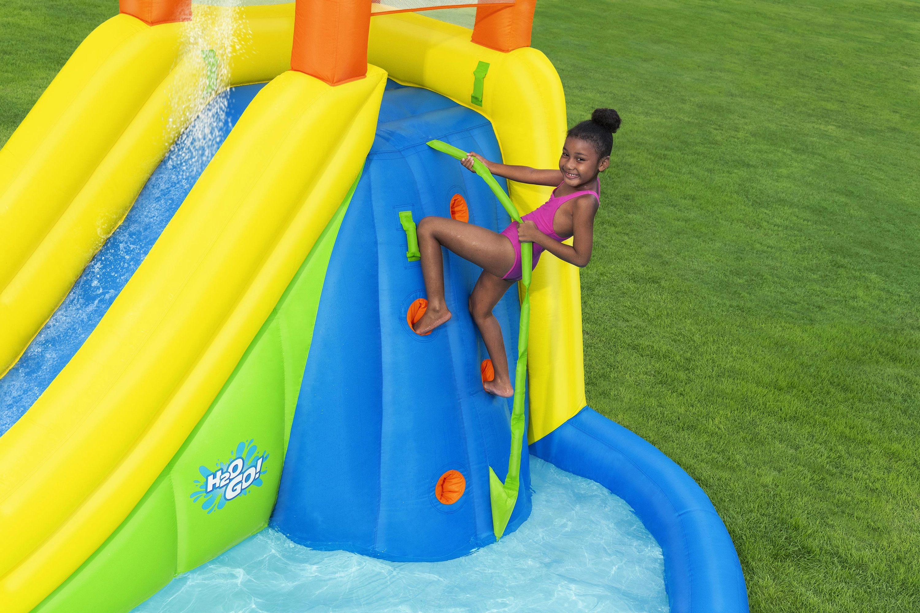 Nafukovacie vodné ihrisko H2O GO! prináša deťom aktívnu zábavu na záhrade – lezenie, šmyk, čľapkanie aj vodné prestrelky. Vstavané postrekovače udržiavajú šmýkačky príjemne klzké a chladné, takže si deti užijú plynulú jazdu aj v horúcich dňoch. Odolný materiál a premyslené bezpečnostné prvky robia z tohto setu ideálnu voľbu pre rodinné leto.