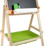 Objavte univerzálnu tabuľu 2v1 pre deti od 4 rokov – drevenú, stabilnú a výškovo nastaviteľnú. Ponúka čiernu kriedovú aj bielu magnetickú stranu na kreslenie, písanie a učenie. Súčasťou je zelený úložný box a doplnky na okamžité použitie. Ideálna na rozvoj kreativity aj jemnej motoriky a na zábavné učenie doma. Obojstranná tabuľa, magnetická biela plocha a kriedová čierna plocha, nastaviteľná výška, stabilná drevená konštrukcia, úložný priestor.