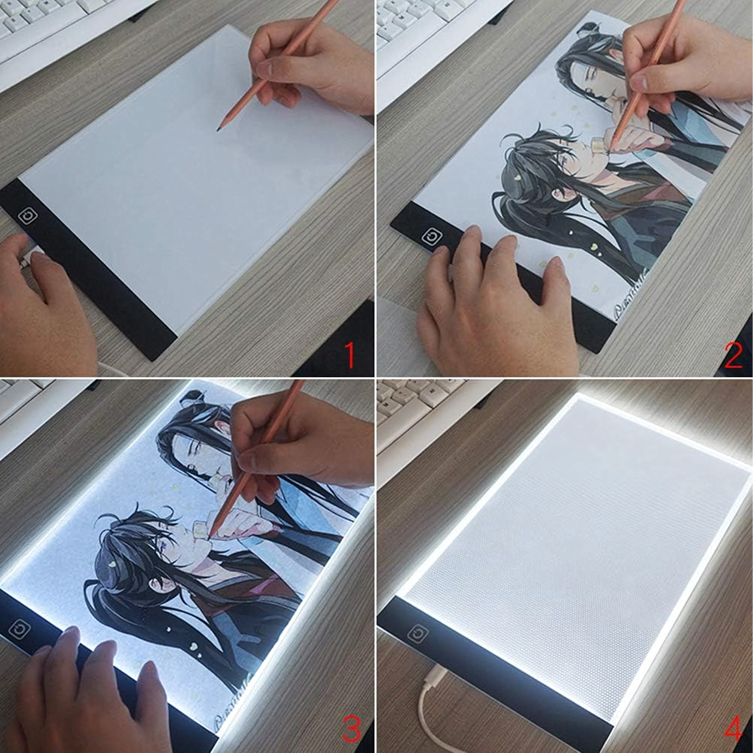 Táto tenká a prenosná LED light pad A4 uľahčí každodennú kreatívnu prácu. Vďaka rovnomernému podsvieteniu jasne presvieti línie cez papier, takže prekresľovanie komiksov, ilustrácií alebo technických náčrtov je rýchle a presné. Ovládanie je jednoduché dotykovým tlačidlom a napájanie prebieha cez USB z notebooku, powerbanky či adaptéra.