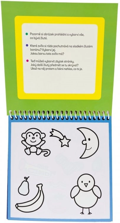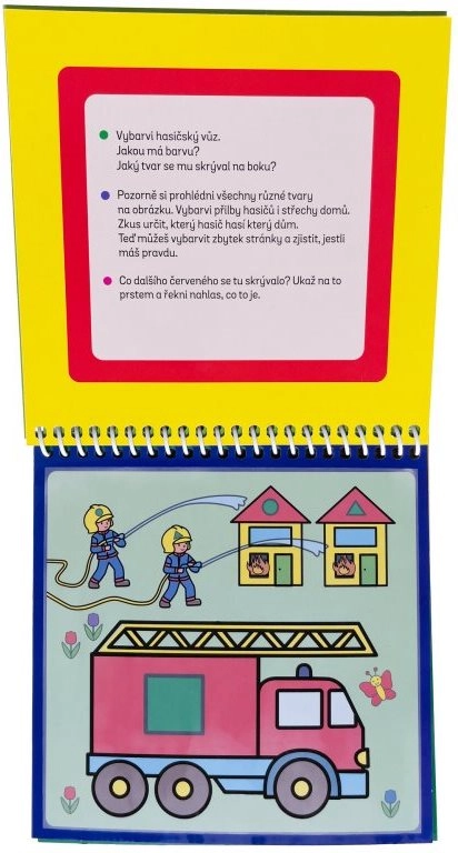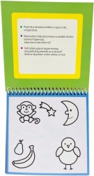 Táto opakovane použiteľná vodná maľovanka je ideálna pre predškolákov. Deti si hravou formou precvičia rozpoznávanie tvarov, pomenovávanie farieb a jemnú motoriku. Na každej stránke čakajú jednoduché úlohy a skryté obrázky, ktoré sa objavia po prechode vodnou fixkou.