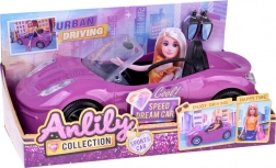 Elegantné kabrio v dievčenskom fialovom prevedení je ideálny doplnok pre herný svet bábik. Vďaka otvorenému topu je usadenie bábik jednoduché a jazda na slniečku ešte zábavnejšia. Interiér zaujme otáčajúcim sa volantom, nálepkami palubných prístrojov a regulovateľnými pásmi – všetko pre ešte realistickejší zážitok.
