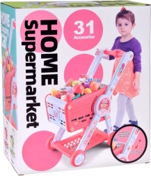 Detský nákupný košík s potravinami a doplnkami na hru na obchod