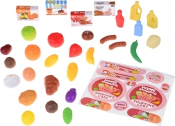 Plastové ovocie a zelenina, pečivo, údeniny, syry, fľaše, krabičky, samolepky