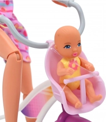 Set bábiky–mamičky s bábätkom a elegantným mestským bicyklom je skvelou voľbou pre malých milovníkov rolových hier. Bábika s dlhými, česateľnými vlasmi má pohyblivé končatiny, bábätko je pripravené na starostlivosť a bicykel je vybavený detskou sedačkou na spoločné výlety. Kvalitné, bezpečné spracovanie so zaoblenými hranami zaisťuje pohodlnú a bezpečnú hru.