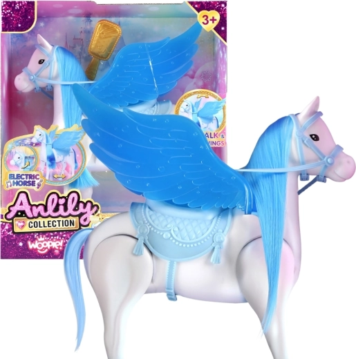 Vstúpte do sveta mágie a fantázie s nádherným interaktívnym Pegasom, ktorý sa stane hviezdou každého detského príbehu. Vďaka elektrickému pohybu sa koník realisticky rozbieha sám a deti môžu prežívať obľúbené rozprávky znova a znova. Odnímateľné sedlo a uzda, veľké dekoratívne krídla a trblietavý vzhľad zaručujú ešte väčší diel zábavy.